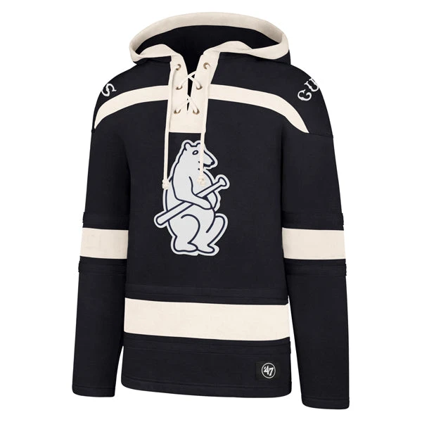 Show your team spirit with this officially-licensed Chicago Cubs Navy 1914 Bear Superior Lacer Hoodie. Constructed of durable black and white materials, this hoodie will last through years of cheering for the Cubs. Its classic design and colors make it an ideal choice for any fan or collector. Get it today for friends, family, parties, or cold baseball game.