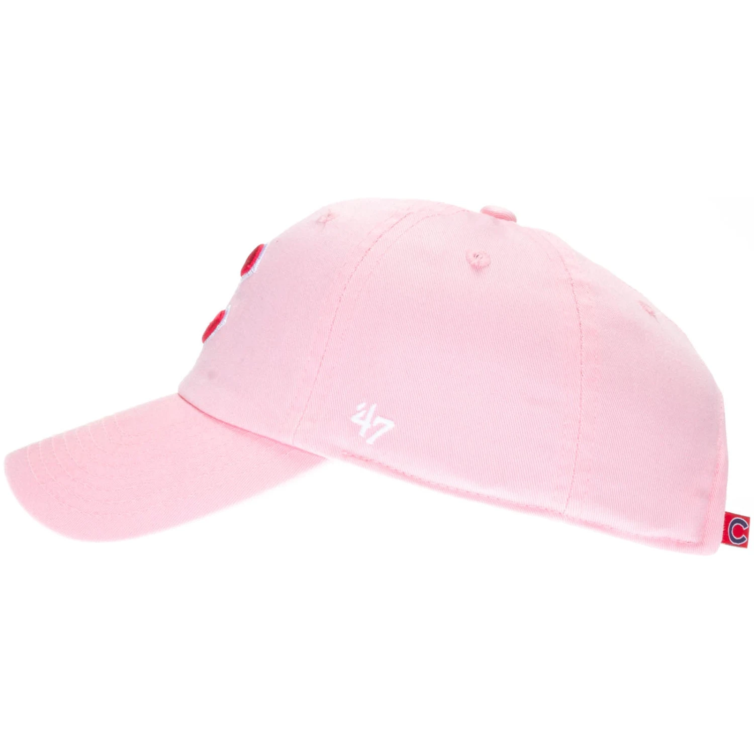 Keep your dedication to North Side baseball on display in a fashionable way in this stylish pink Chicago Cubs hat. This pink Chicago Cubs hat features the embroidered red “C” logo on the front of the hat’s relaxed slouch crown. This hat has an adjustable strap that fastens with a metal clasp that ensures the hat is always a comfortable fit. Get ready for a fun summer of sunshine and North Side baseball with this pink Chicago Cubs hat.