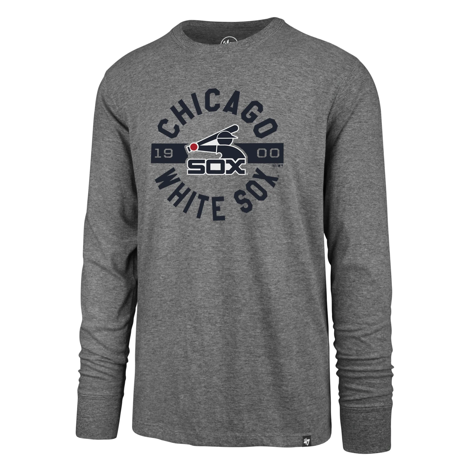 Men’s Chicago White Sox Slate Grey Round about Long Sleeve by 47′ features “Chicago White Sox” around the Chest with 1901 and Batterman. The ’47 Club Long Sleeve is made from soft material, heathered jersey with a tagless neckline, side seams and Vibrant graphic.Â