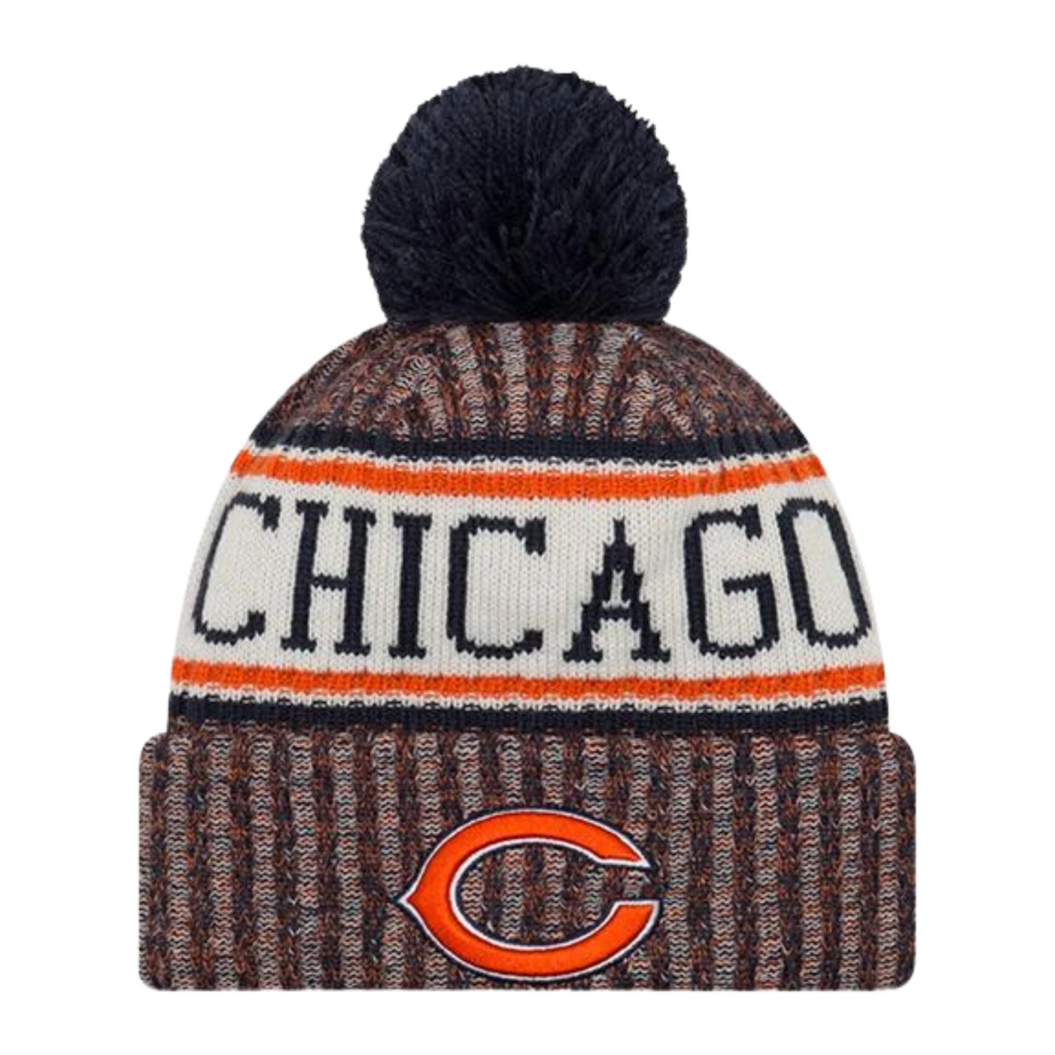 Keep warm as each Sunday Funday grows colder while showing your support for the Chicago Bears 2018 Sport Knit -Navy Chicago & “C” Logo w/Pom. This Navy knit cuff hat features the team’s “C” logo is embroidered on the front of the hat. The back of the hat features the team’s “GSH” logo is embroidered in orange and white thread to the right of the embroidered NFL. Get this Chicago Bears 2018 Sport Knit -Navy Chicago & “C” Logo w/Pom today.