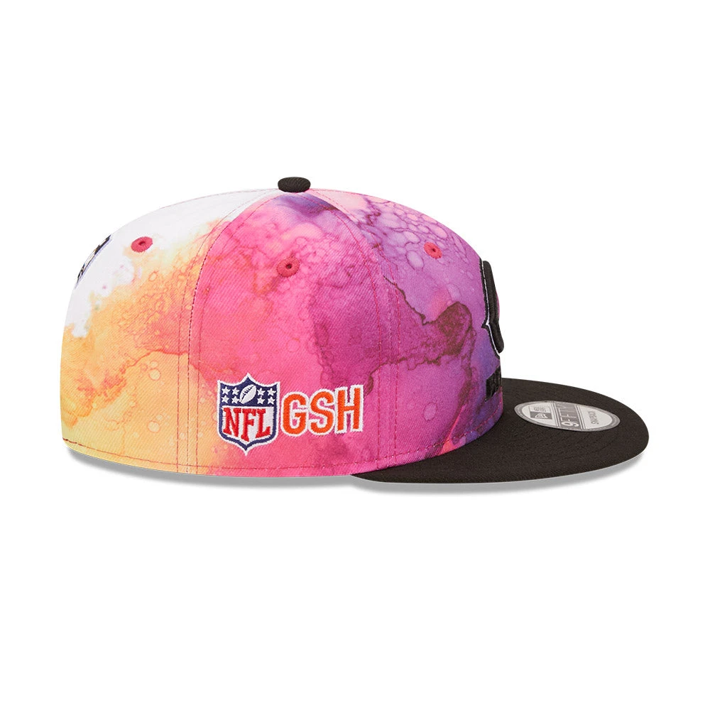 Intercept Cancer with the official 2022 NFL Crucial Catch collection from New Era. This ink-dyed 9FIFTY Snapback Hat features an embroidered Chicago Bears logo on the front with a black brim. The official NFL shield is on the right side of the hat, while the rear displays the league’s Crucial Catch logo on a woven label above the adjustable closure.