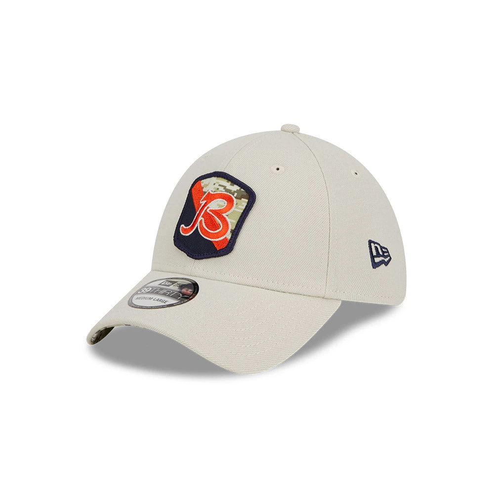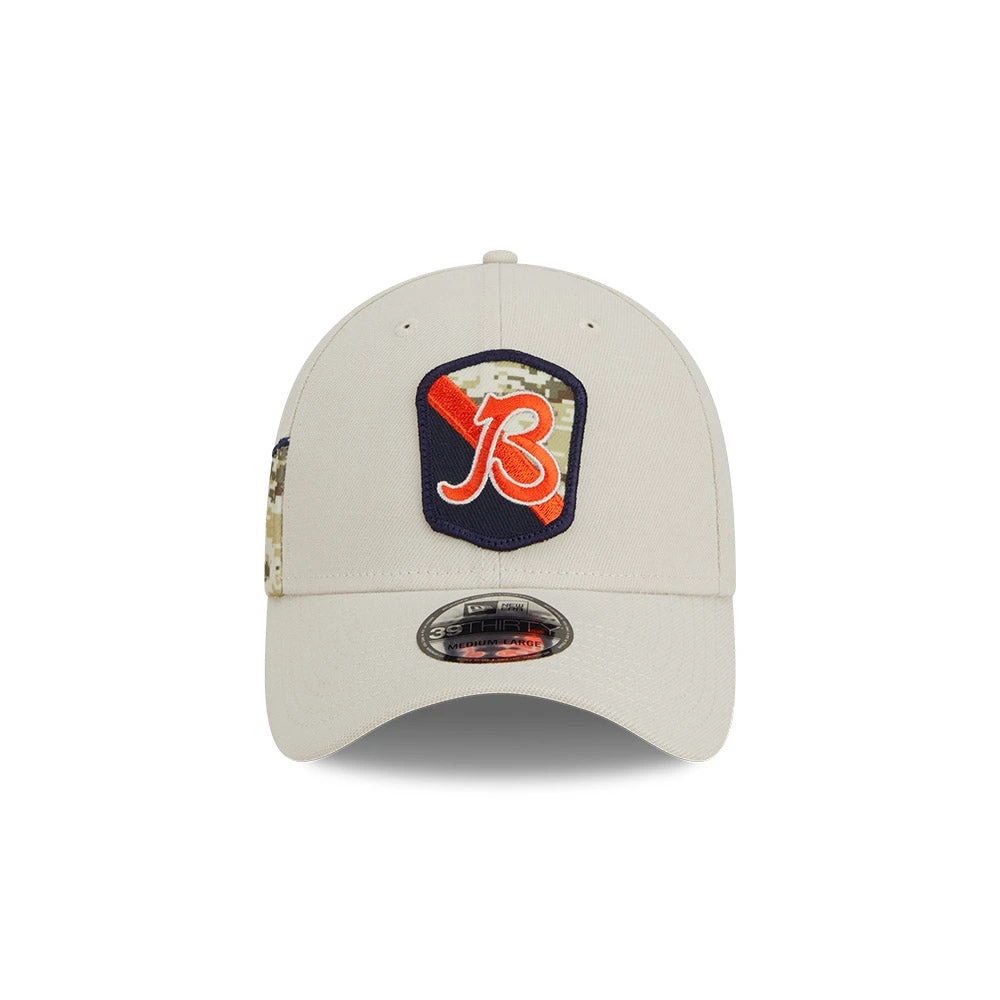 Support the Chicago Bears in style with the 2023 Salute To Service New Era 39THIRTY Flex Fit Hat! This sand colored hat features camo print accents and a U.S. flag patch on the right. Show your patriotism and love for your team with this unique and stylish hat.