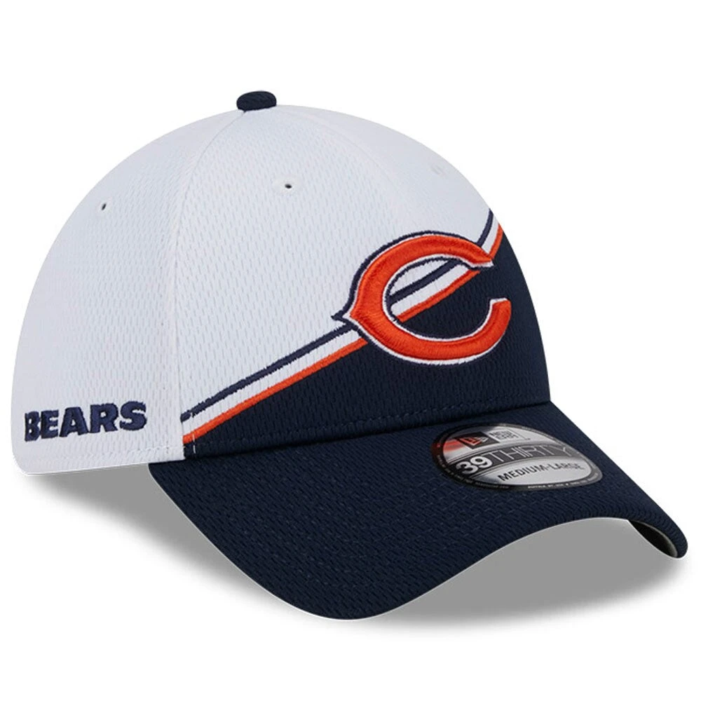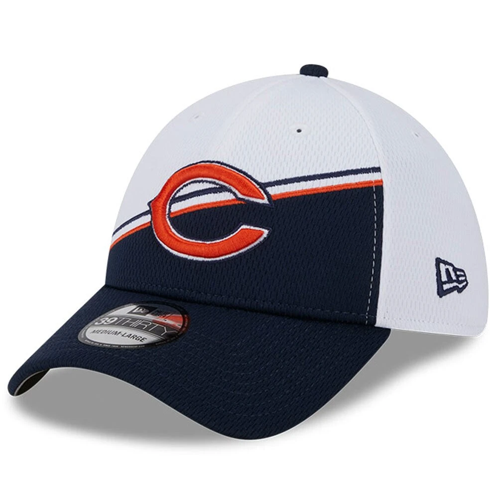 Score big with this fun ’39THIRTY Flex Fit Hat from New Era! Cheer for the Bears in this white and navy cap – with an orange C and Chicago Bears embroidered on the right side and NFL in the back – and you’ll be ahead of the game. Go Bears! 🐻 Get it today at Clark Street Sports!