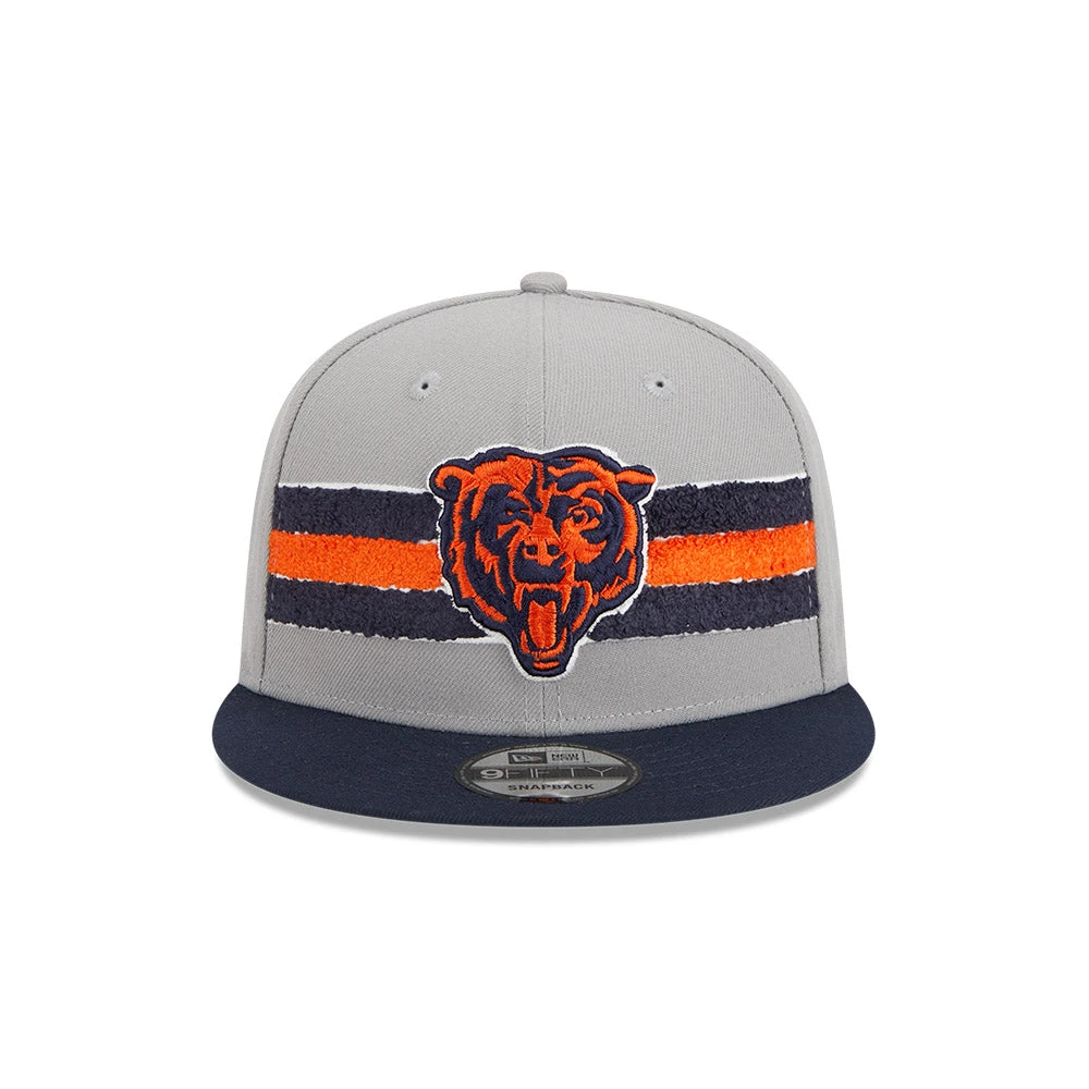 Rock the stands at Soldier Field in this Chicago Bears Gray/Stripes Bear Logo New Era 9FIFTY Snapback hat. Show your team spirit like a true fan – and look good doing it! With its classic snapback design and iconic Chicago Bears logo, you’ll give the competition something to bear witness to. #GoBears!