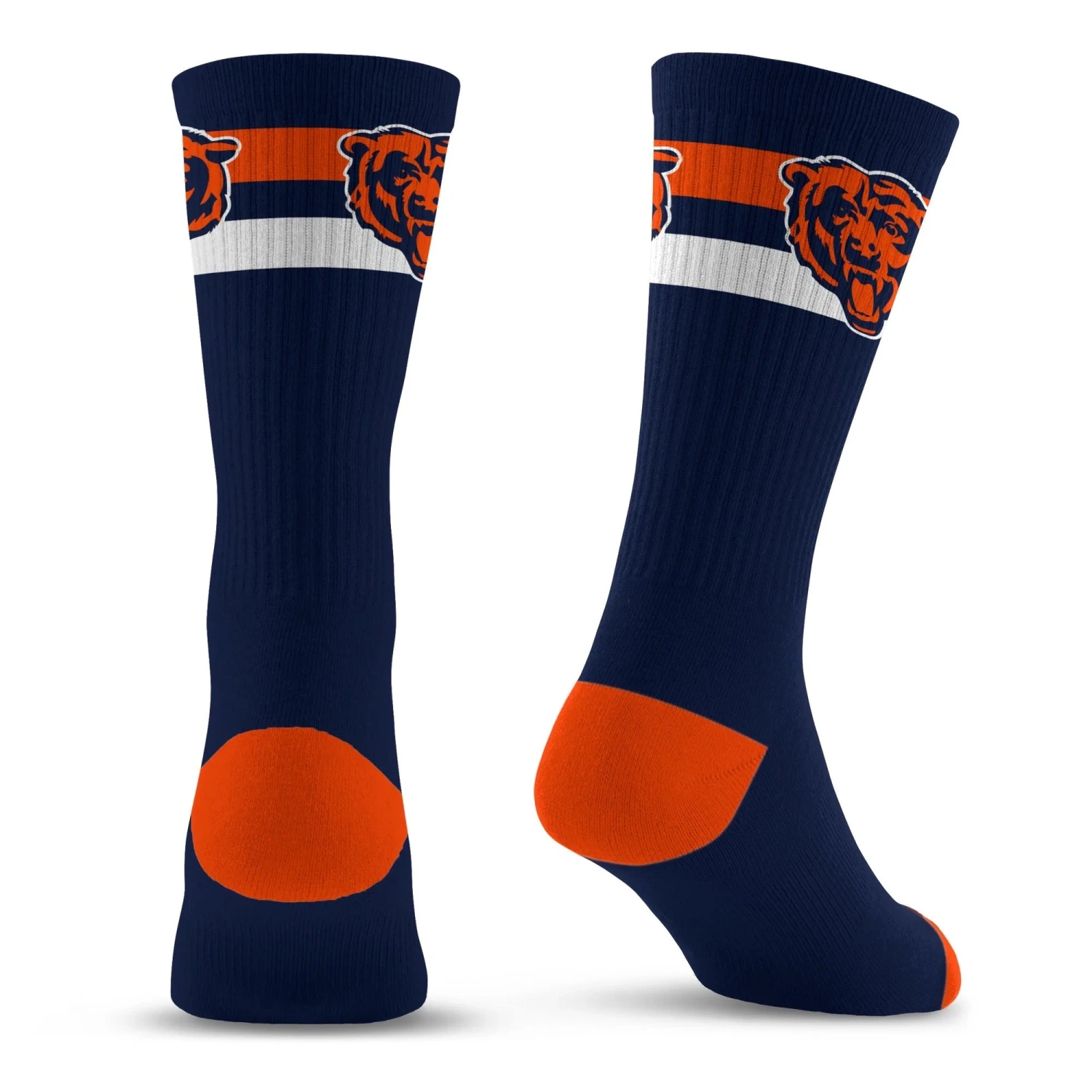 Feel like a roaring Bear with these Chicago Bears Legend Premium Crew Socks! Style yourself with the angry bear logo and OTC stripes in navy and orange and you’ll be ready to tackle any day. Show some love for your team Bears fans! A Men’s Large will be shoe sizes 10-13.