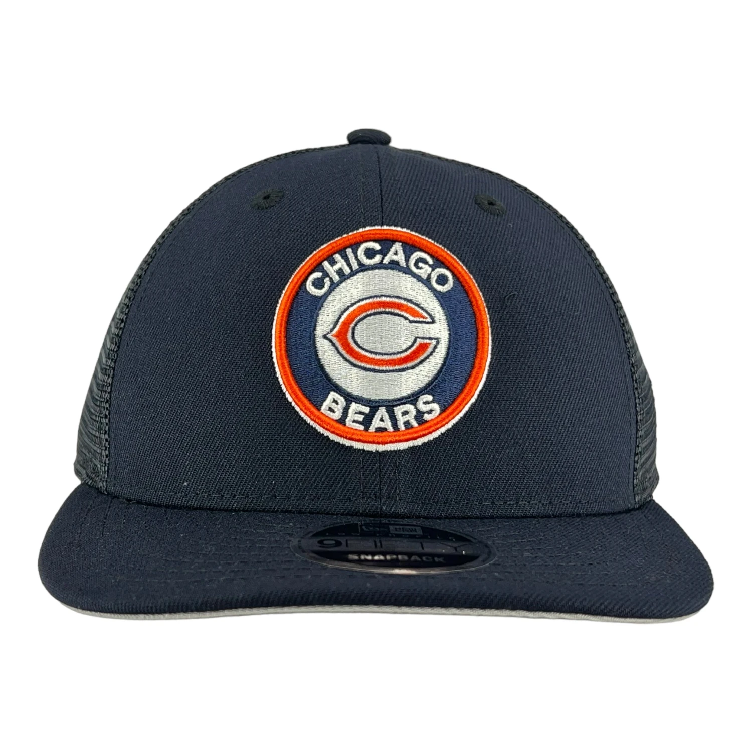 Declare your love for the Chicago Bears with this Navy Circle New Era Snapback Hat. Featuring a mesh back for breathability, this hat boasts an embroidered Bears medallion and team script on the crown and a C logo. Perfect for any passionate fan!