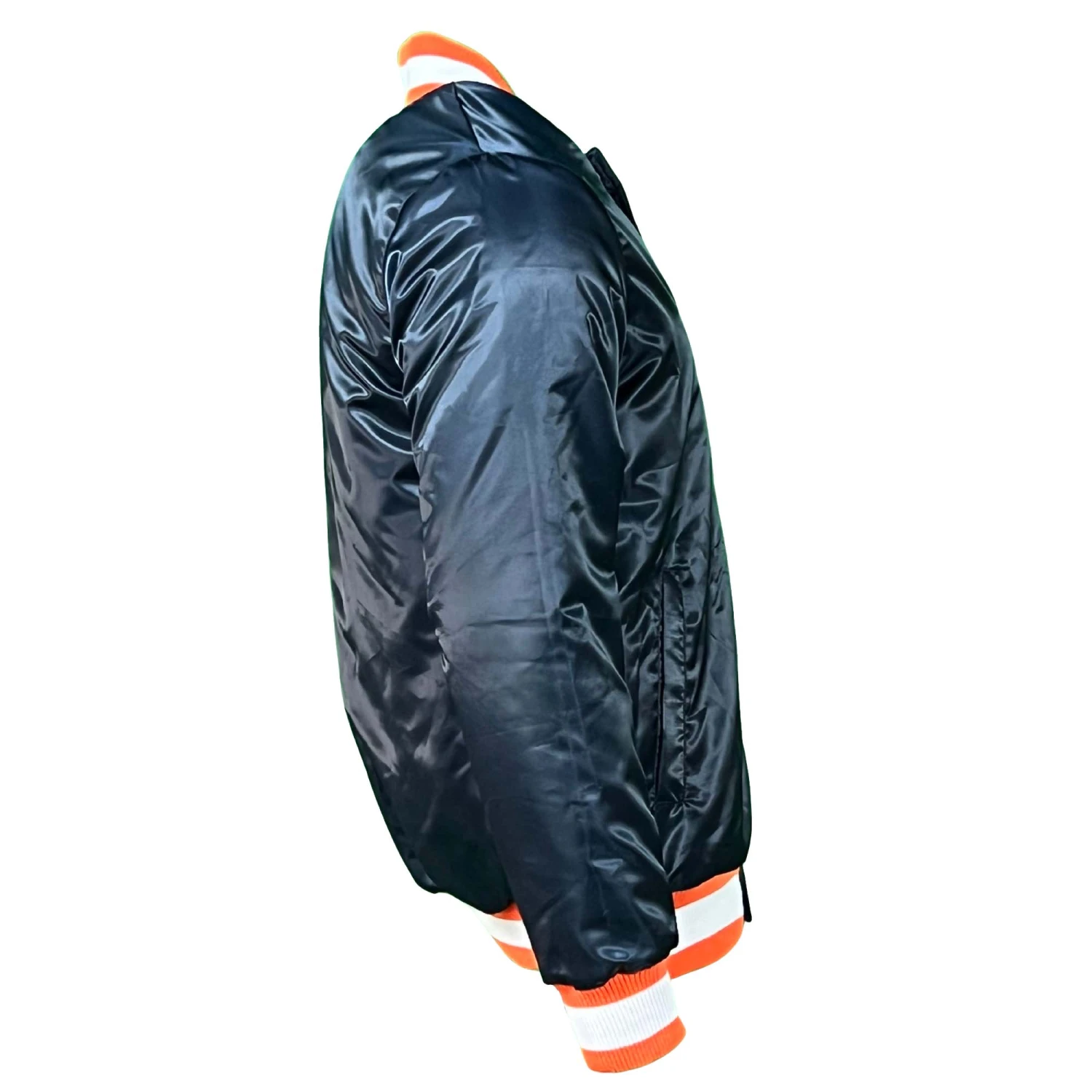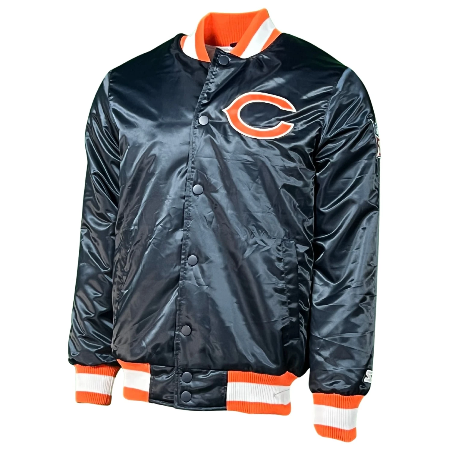 You love to add your Chicago Bears fandom to any look, even if the weather starts to cool. Turn heads with this classic Locker Room Satin Vintage Striped full-snap jacket from Starter. With embroidered Chicago Bears graphics and a full-snap design, this striking jacket will become your go-to anytime you step out.