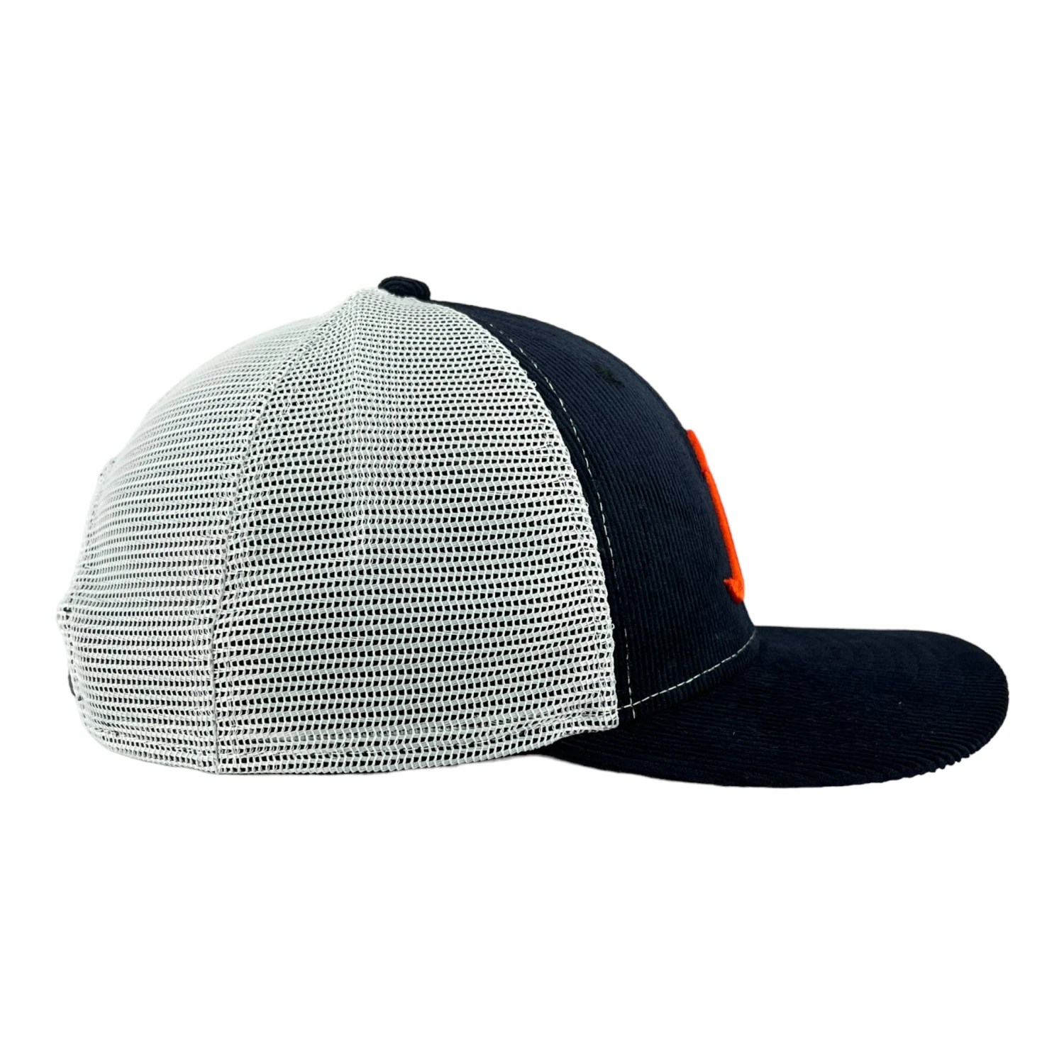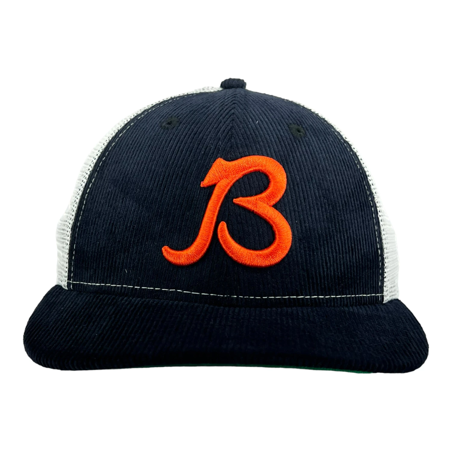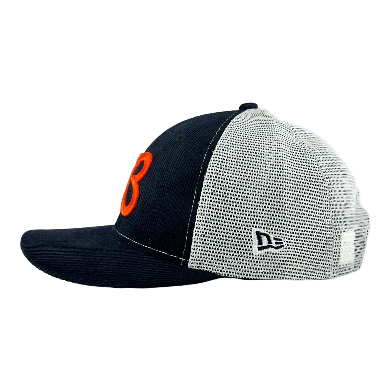 Get ready for game day with the Chicago Bears Navy/White Mesh Back New Era Low Profile 9FIFTY Snapback Hat. The navy corduroy and white mesh back add a touch of style, while the iconic B logo in orange shows off your pride for the team. Stay cool and comfortable while cheering on your favorite team!