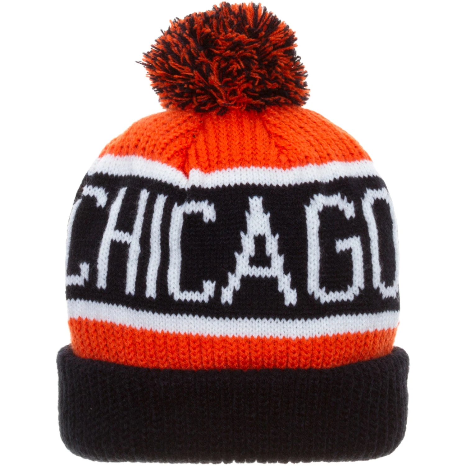 Get ready to Bear Down against chilly weather this football season with this Chicago Bears knit hat. This orange, navy, and white knit pom hat features the words “Chicago Bears” knitted in white on the crown of the hat against a thick navy stripe. The hat is topped with a navy and orange pom. The hat boasts a thick orange cuff that will keep your ears warm during the winter, and it boasts an embroidered, orange and white Chicago Bears “C” logo. Get ready to put up your best defensive line against winter while cheering on the Monsters of the Midway with this Chicago Bears knit pom hat.