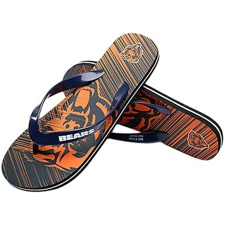 Chicago Bears Unisex Fade Stripes Flip Flops with Bear Face Logo by Forever Collectibles. Get ready for summer in these Chicago Bears flips flops. These flip flops features Chicago Bears team “Angry Bear logo and stripes printed in orange, navy and white. Look cool and casual this football season wearing these Chicago Bears Unisex Fade Stripes Flip Flops with Bear Face Logo by Forever Collectibles, so grab yours today!