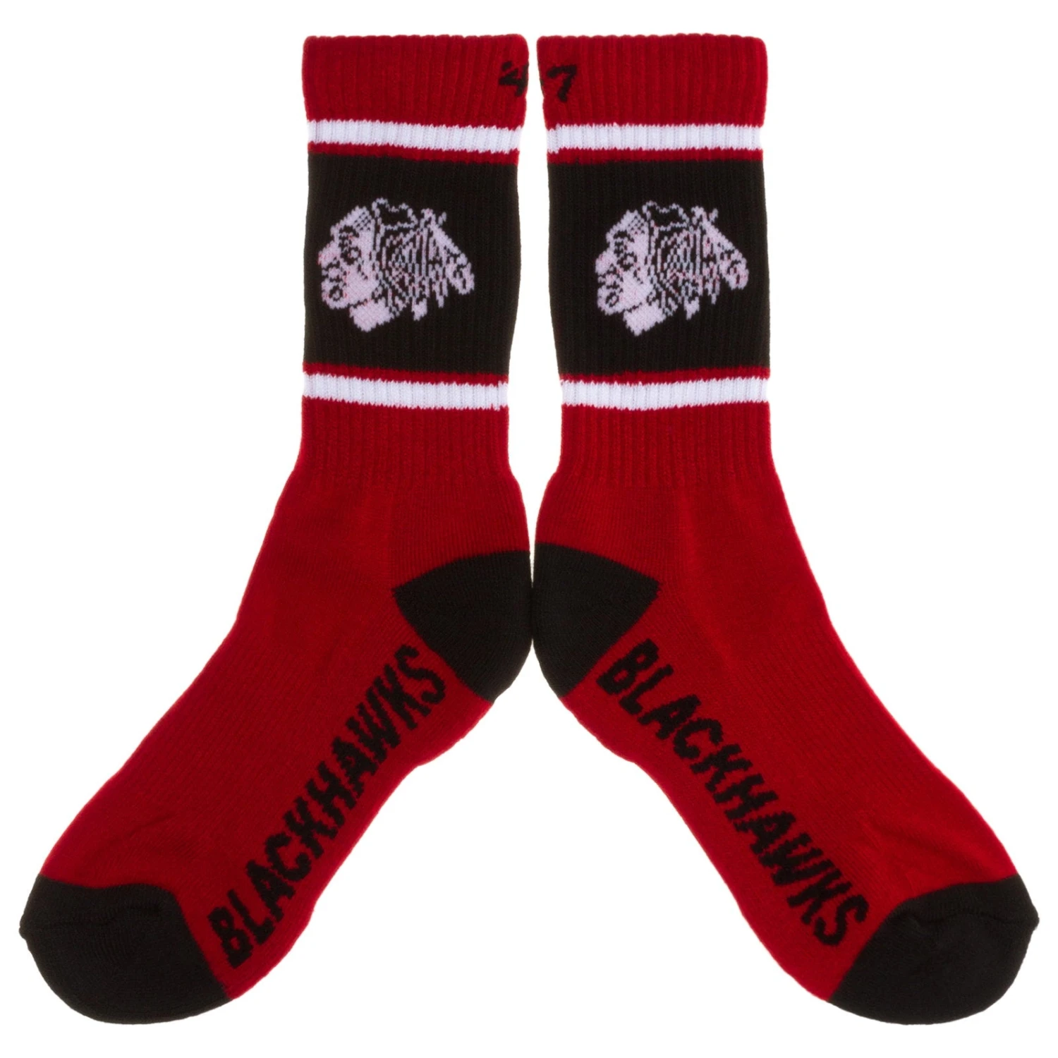 Complete your Blackhawks ensemble with these Chicago Blackhawks socks. These red socks feature a black stripe across the top that boasts the Blackhawks iconic Indian head logo knitted in white. The toes and the heels of the socks are black, and the word “Blackhawks” is knitted in black block letters along the arch of the foot. These socks are made with moisture-wicking material and feature arch support to maintain healthy, happy feet. Get on point Blackhawks style with these unique Chicago Blackhawks socks.