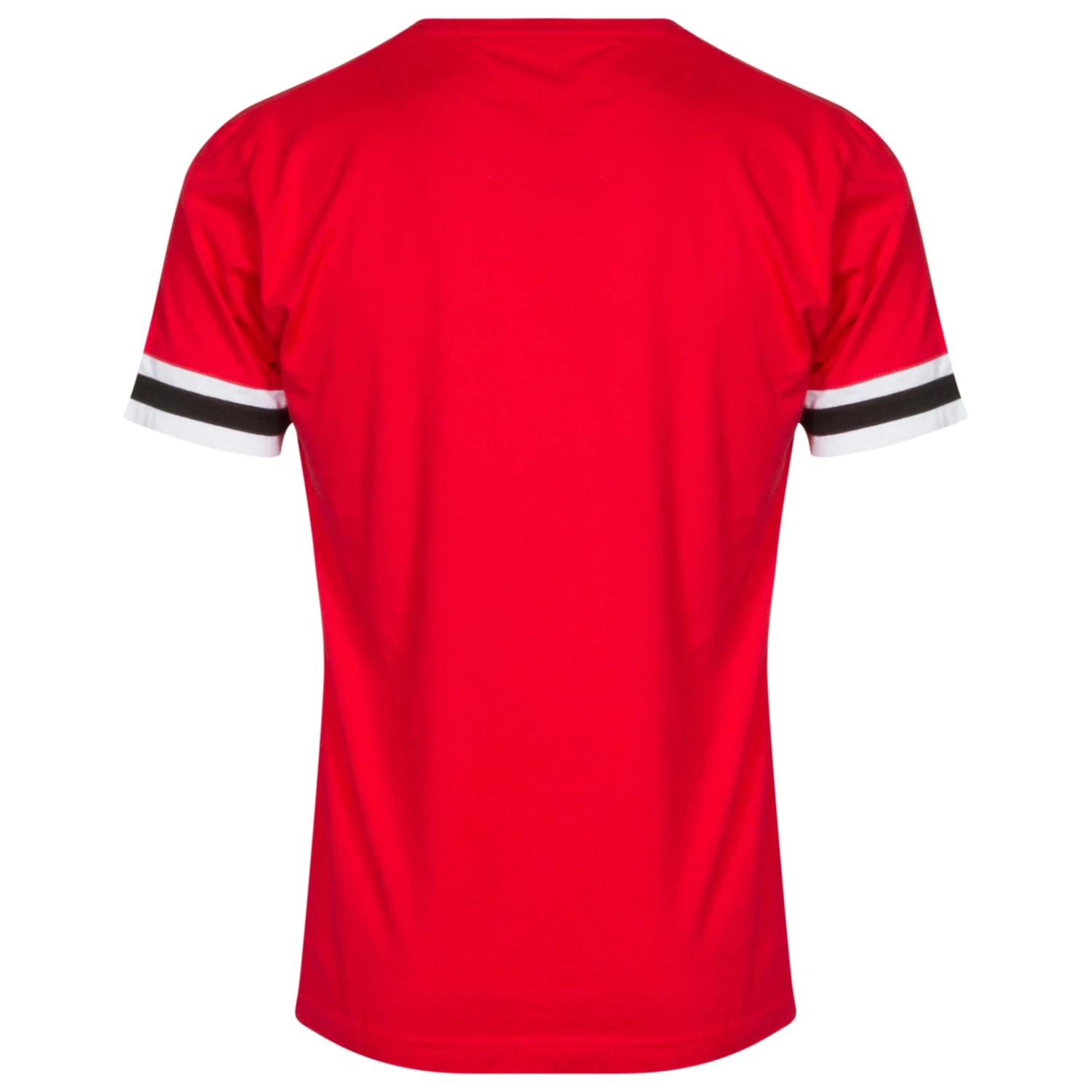 Show your love for the history of your favorite hockey team in this Chicago Blackhawks v-neck tee shirt. This red tee has a shallow v-neck collar and white and black fabric stripes on the end of the sleeves. The retro Chicago Blackhawks Indian head logo is screen-printed in full-color across the chest. This unique tee is perfect for any hockey fan looking to show their long-lasting dedication to the Chicago Blackhawks.