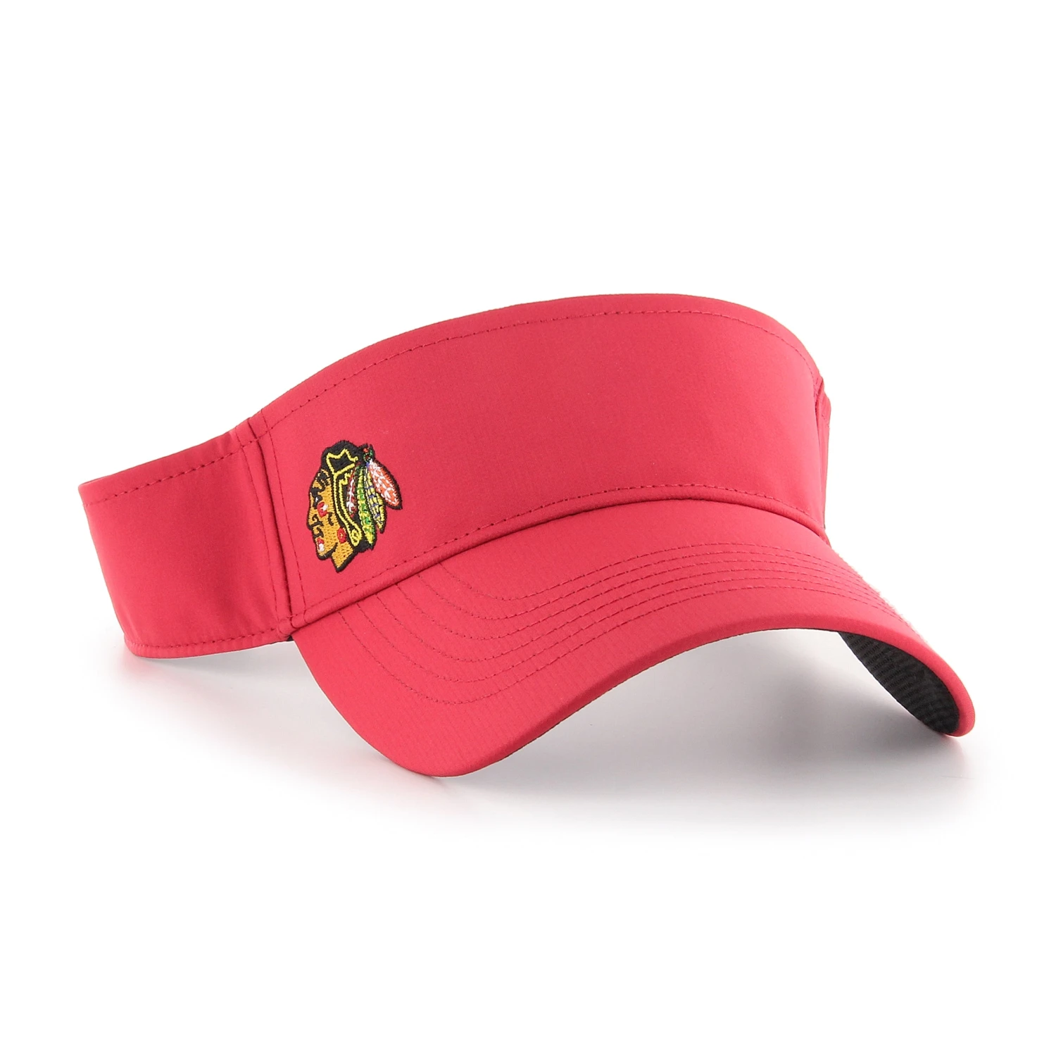 Chicago Blackhawks Red Repetition 47 Visor. Keep the sun out of your eyes in this adjustable velcro visor. This hat features the team’s Indian Head logo stitched on right side crown, 47 stitched on left side with adjustable velcro strap. Grad this Chicago Blackhawks Red Repetition 47 Visor today!