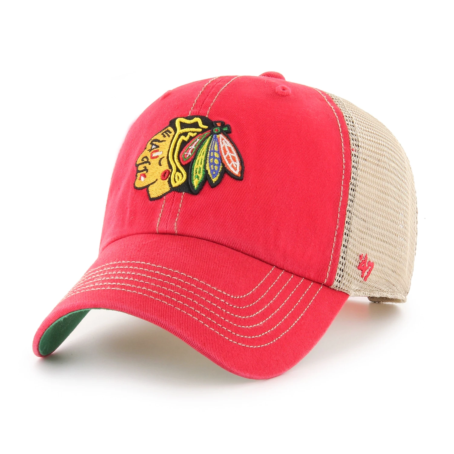 Chicago Blackhawks Red Trawler 47 Clean Up. Get ready to cheer the Chicago Blackhawks to victory in this red mesh adjustable hat. This hat features the team’s Indian head logo embroidered on center crown, two panel constructions with embroidered eyelets, mesh back with adjustable snap closure. Roll up to the United Center in this Chicago Blackhawks Red Trawler 47 Clean Up , so grab yours today!