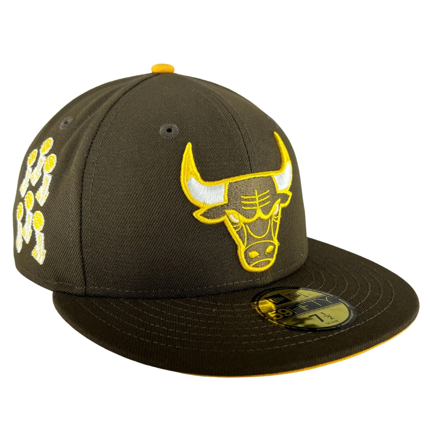 Uniquely designed in a brown and gold colorway, this Chicago Bulls New Era 59FIFTY fitted hat will catch the eye of anyone who’s looking! The logo is embroidered on the center of the hat. The patches on the side showcase the 6 time championships of the Chicago Bulls. You’re not going to want to miss out on this drop!