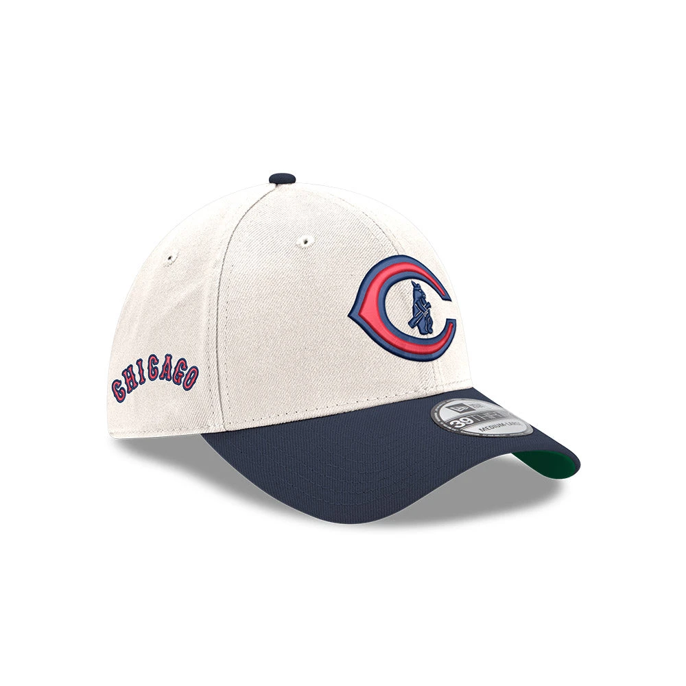 Rock a vintage look with this official Chicago Cubs 1927 logo flex-fit hat from New Era. The White Navy 39THIRTY hat is designed for a snug, comfortable fit and features a breathable polyester/spandex blend fabric. Show your loyalty in style!