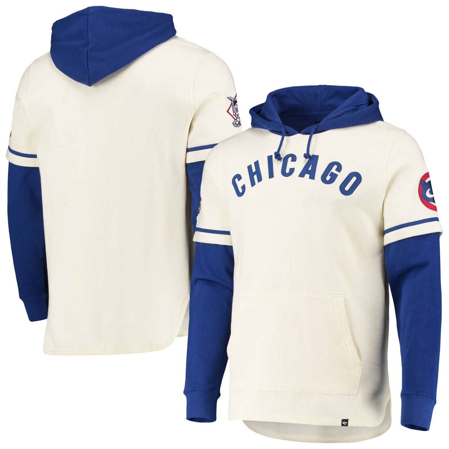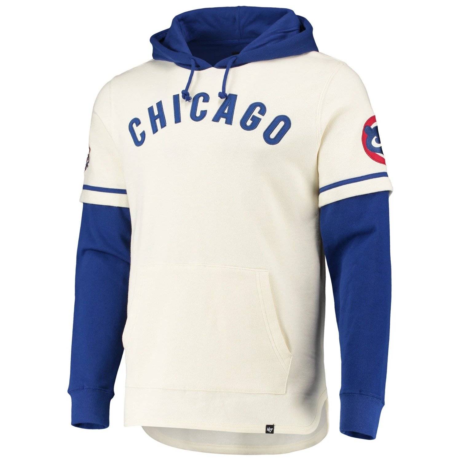 Layer up and take on the day beaming with Chicago Cubs spirit with this Trifecta Shortstop pullover hoodie from ’47. It features bold embroidered Chicago Cubs graphics across the chest in a royal blue against the cream color of this hoodie. It also comes with the classic front pouch pocket. Plus, the rounded hem and side splits add to this pullover’s comfy fit and feel.