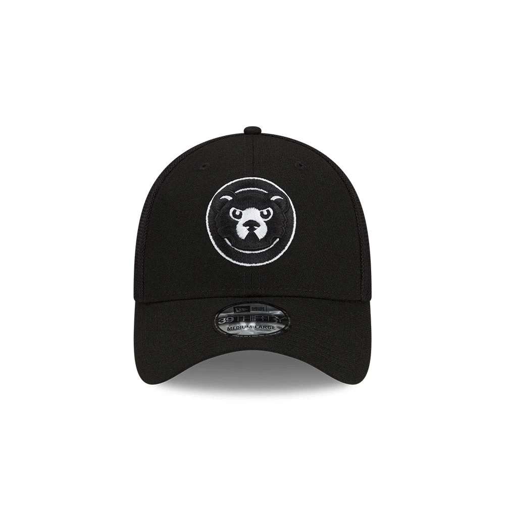 Looking for a new hat for your collection? Get this Chicago Cubs Black Batting Practice New Era 39THIRTY Flex Fit Hat. The angry bear logo is in black and white on the front of the hat. Get it today at Clark Street Sports!