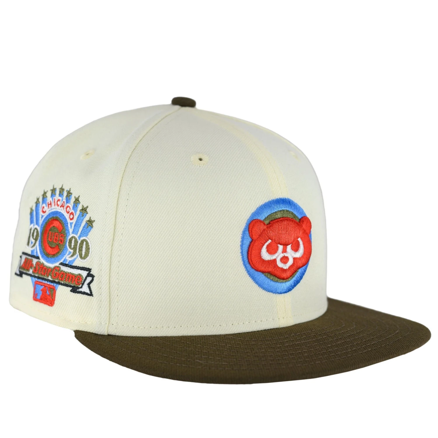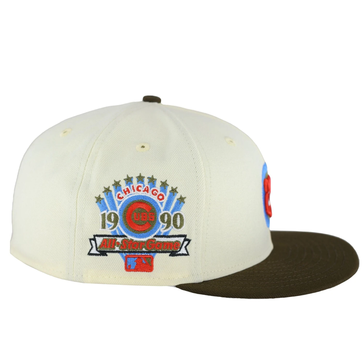 Check out this Chicago Cubs Chrome/Walnut/UV Grey New Era 59FIFTY Fitted Hat! It features a chrome crown and a walnut brown brim. The hat’s logos are designed with vibrant blue and red threads. The 1990 All-Star Game side patch is featured on the hat’s right side in the bright colorway. Don’t forget to check out the hat’s contrast color undervisor!