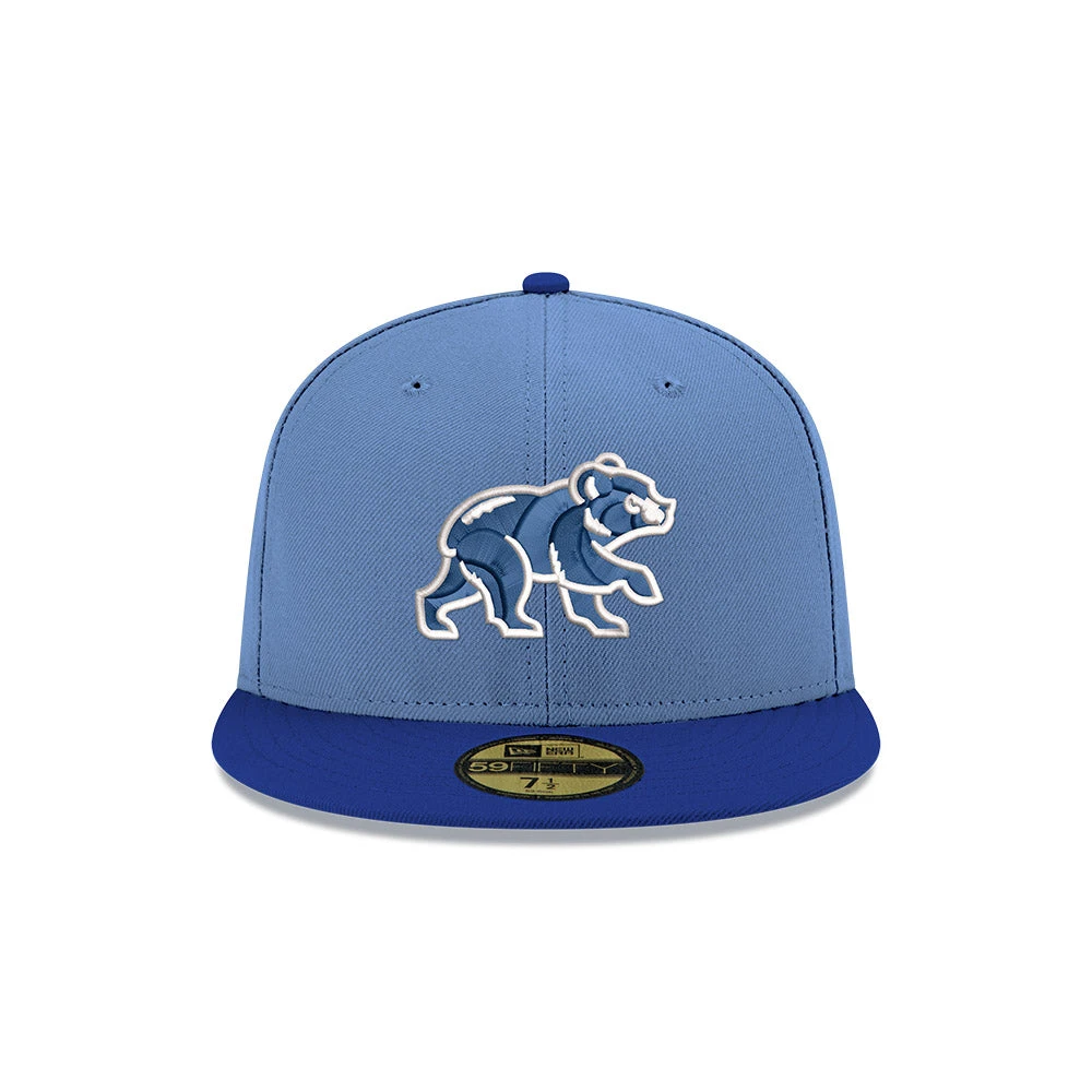 Introducing the Chicago Cubs Columbia 24 Walking Bear New Era 59FIFTY Fitted Hat. Featuring the iconic Walking Bear logo, this high-quality fitted hat is made by New Era and proudly displays the Chicago Cubs team name. Stay stylish and show your team spirit with this official MLB licensed hat.