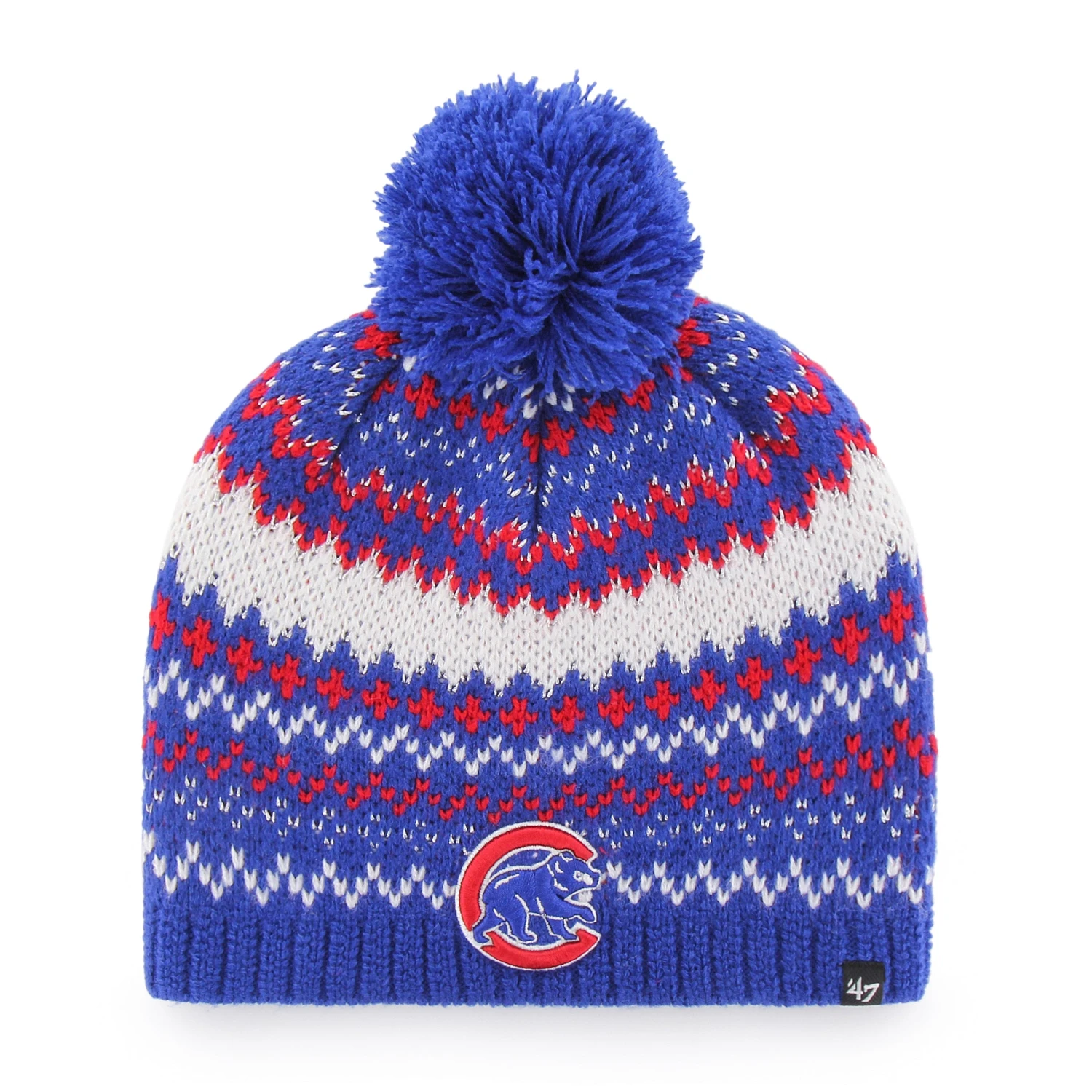 Chicago Cubs Jovie 47′ Beannie by 47′. Features a red, white, and royal pattern, royal pom with a embroidered “Walking Bear” on center. Ladies not only will you be boasting your favorite team,but will be staying warm this winter season. So grab this Chicago Cubs Jovie 47′ Beannie today!