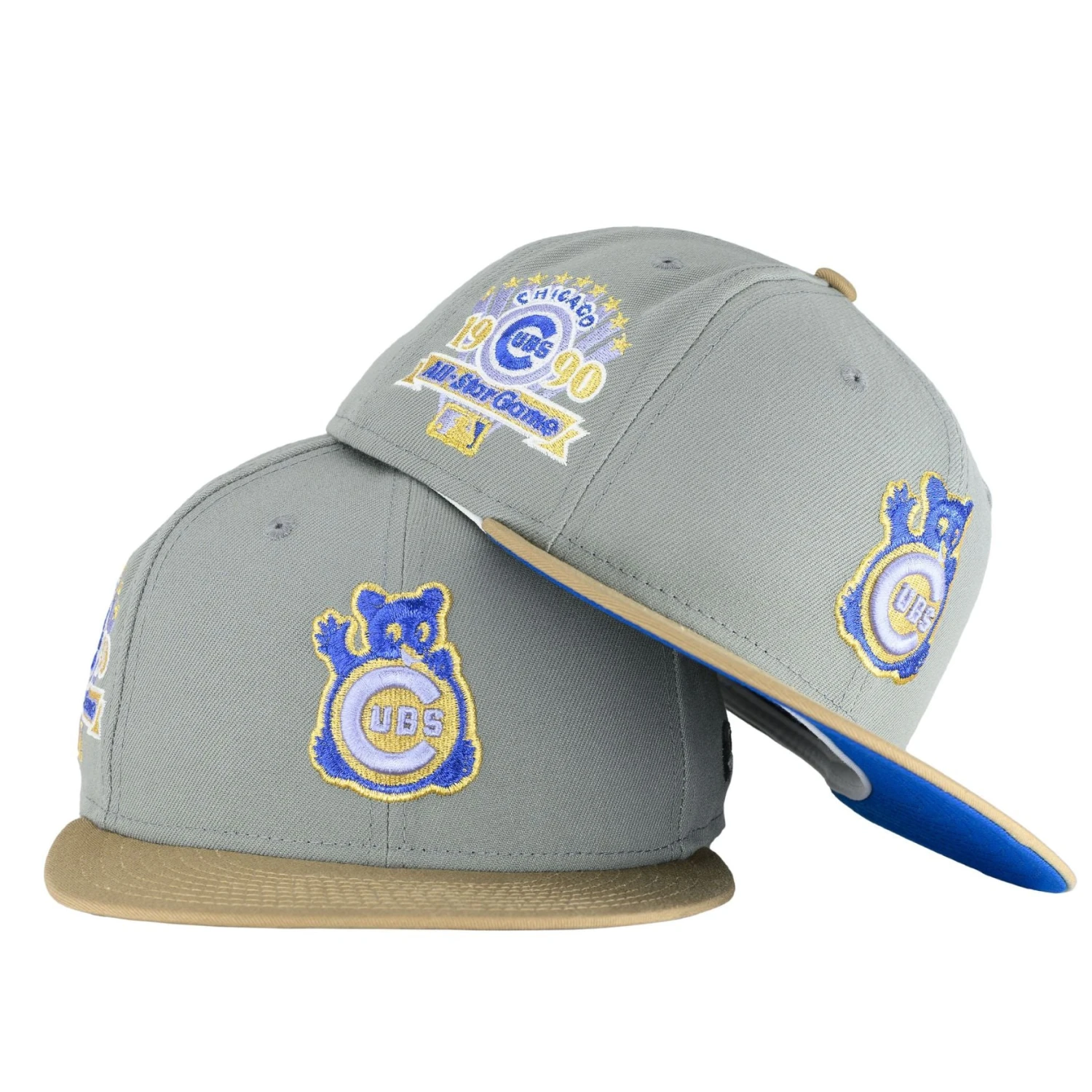 Check out the Chicago Cubs Misty Grey and Khaki Waving Bear 90ASG 59FIFTY Fitted. The waving bear is embroidered in gold metallic threads on the crown with matching batterman in the back. Don’t forget to check out the 1990 All-Star Game patch on the right side in the hats gold and blue colorway. Take a look at the boldly colored undervisor! The exclusive hat is available only at Clark Street Sports!