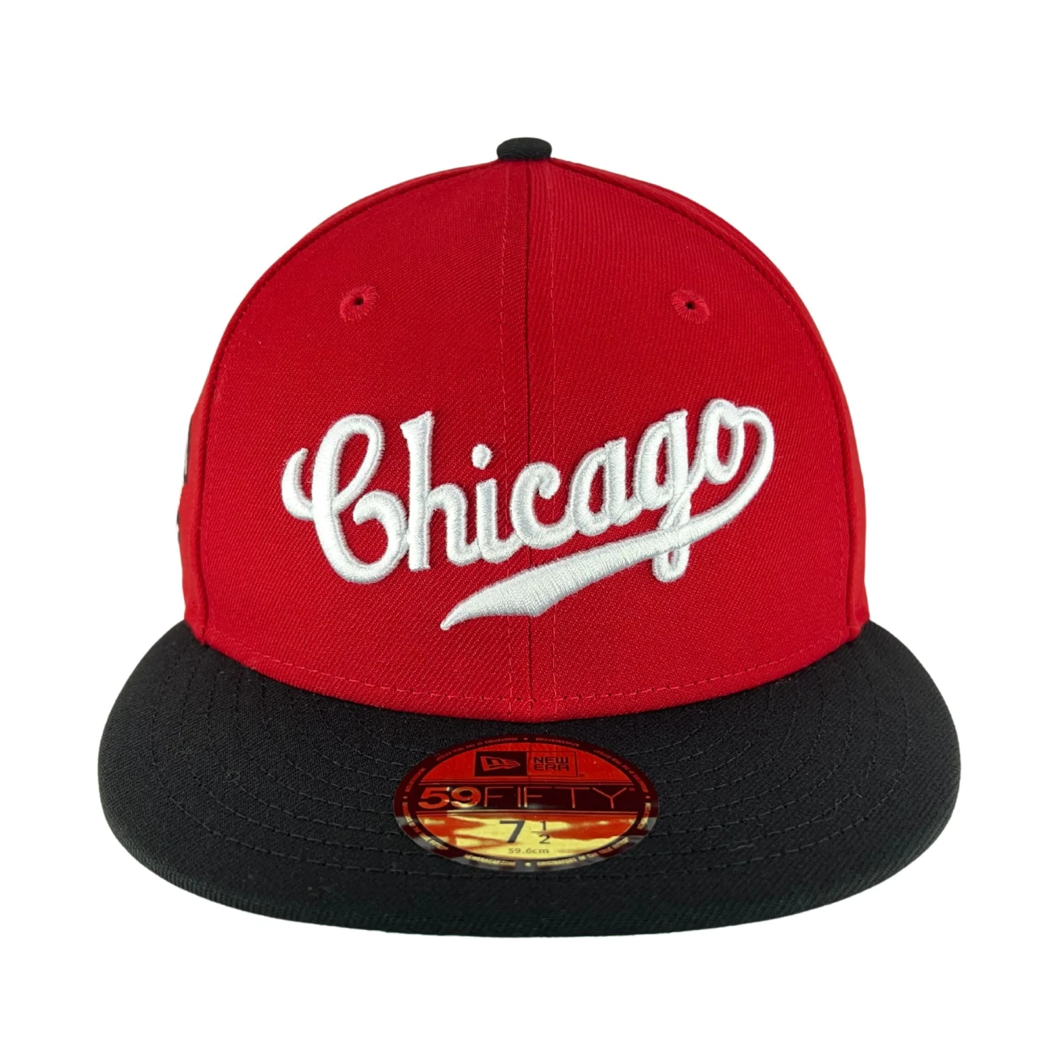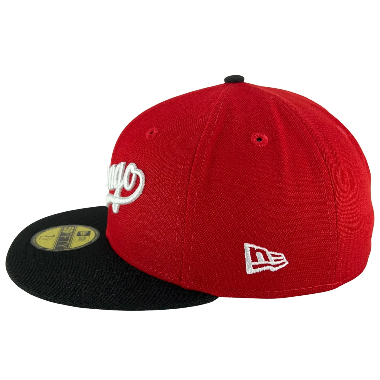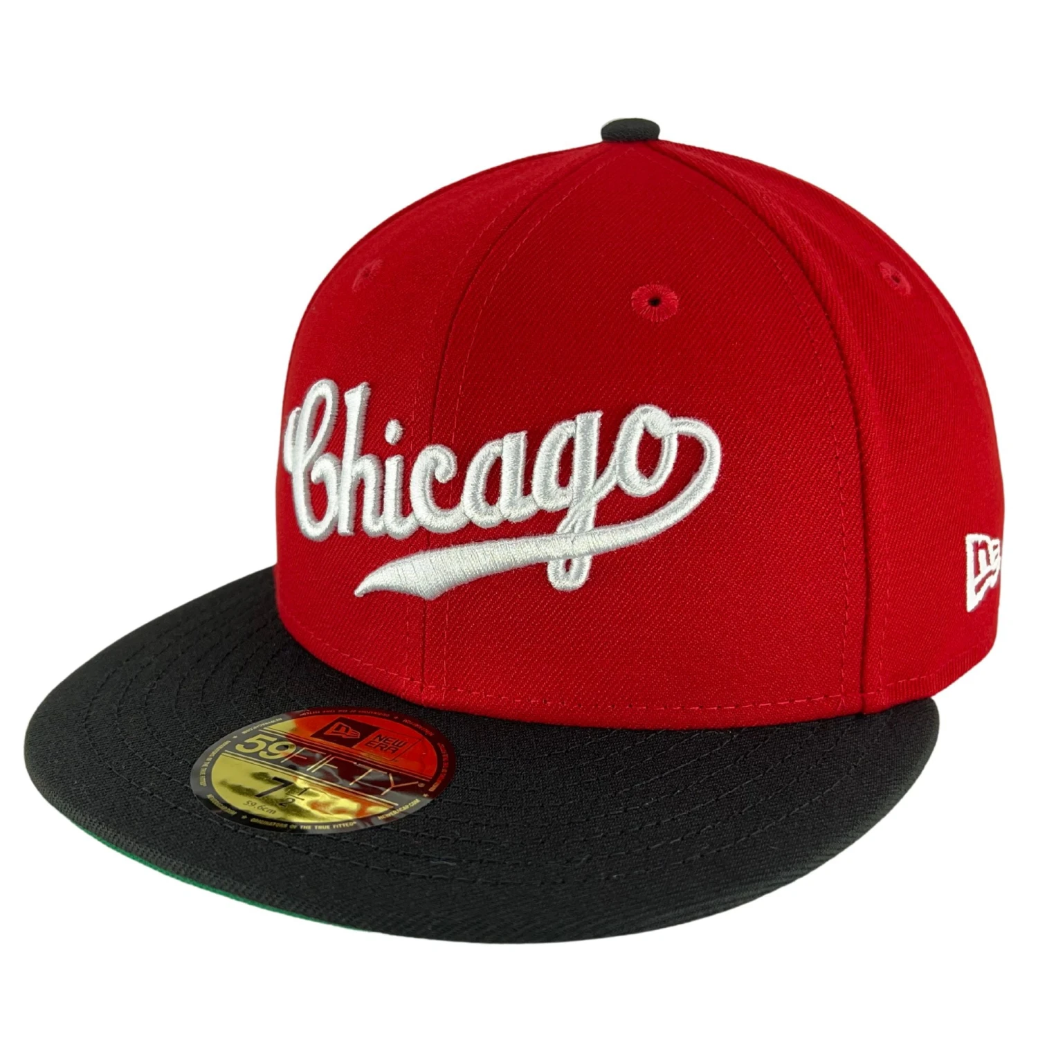 Part of our script Chicago 3-pack, this Chicago Cubs Red/Black/Green UV Script New Era 59FIFTY Fitted Hat will be sure to stand out in your collection! This uniquely designed cap showcases quality stitching throughout its design which stands out against the hat’s red and black colorway. The Chicago Cubs patch prominently stands out on the hat’s right side while the back of the hat features the traditional MLB batterman logo. Don’t forget to check out the hat’s contrast color undervisor in green! You’re going to want to add this to your collection. Only at Clark Street Sports.