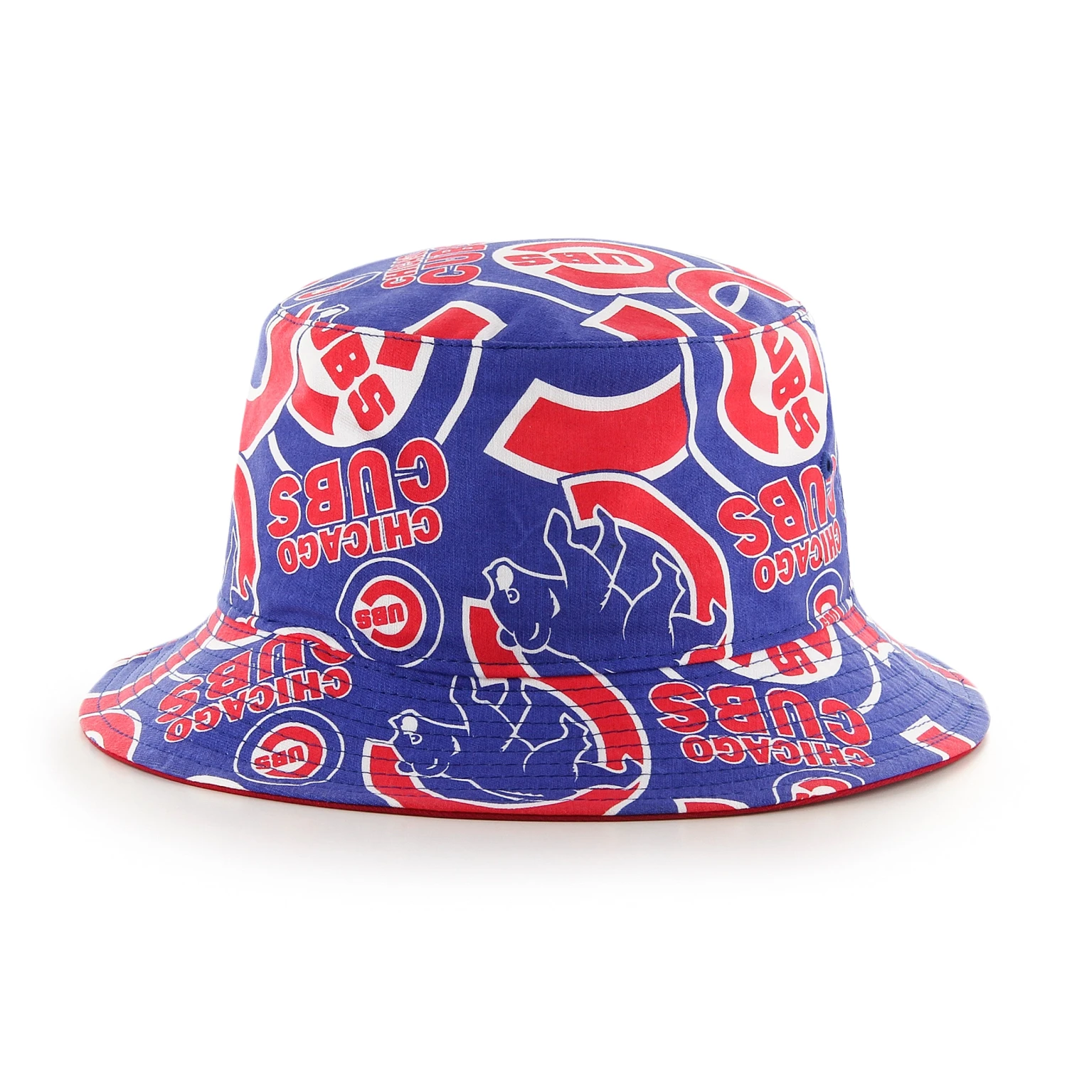 Get ready for a summer of soaking up the sun in the bleachers with this Chicago Cubs bucket hat. The sublimated print features the Cubs bullseye logo, the Cubs text logo, and the Cubs popular crawl bear logo in various sizes. This hat is perfect for keeping the sun out of your eyes while showing your dedication to the greatest team in professional baseball.Â