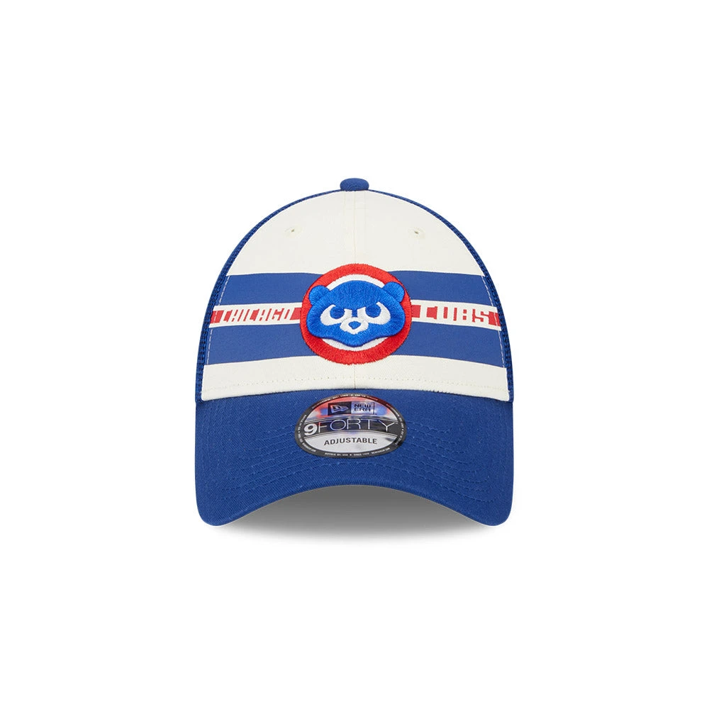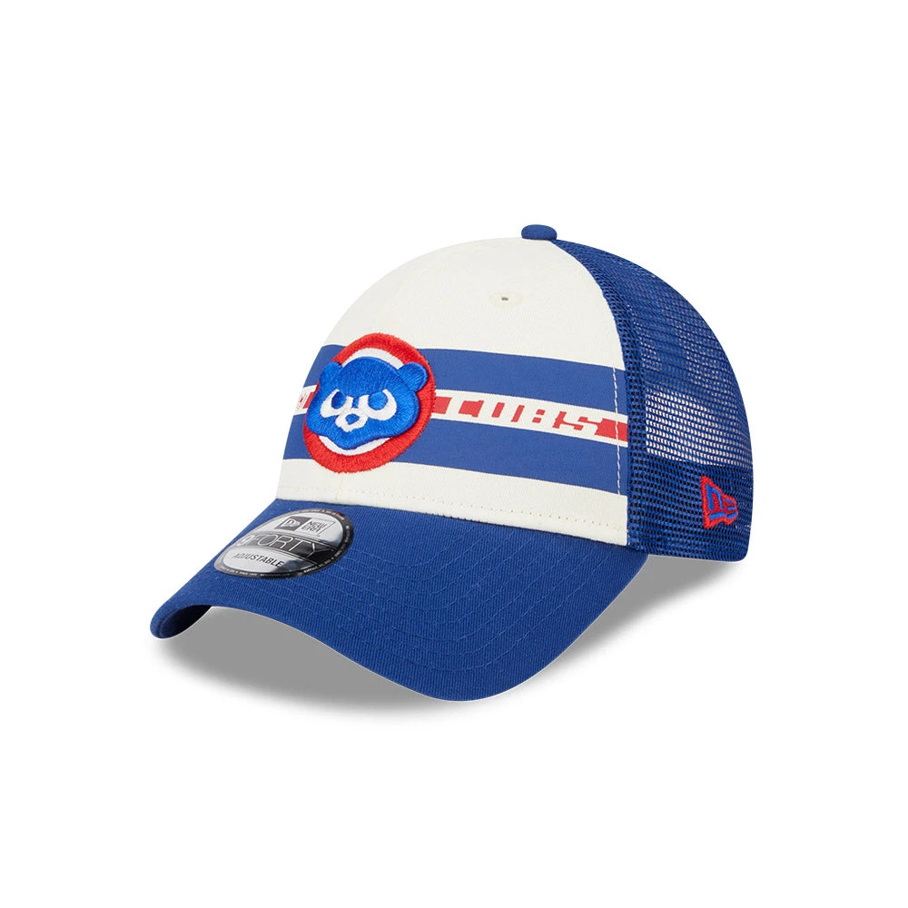 Looking for a new hat to add to your collection? Get this Chicago Cubs Team Stripes Throwback New Era 9FORTY Adjustable Hat. The Cubby bear is seen on the crown of the hat in Cubs colors along with two blue stripes with “CHICAGO CUBS” written between them in white. The back of the hat is mesh in royal blue. Get yours today to show off your team pride at Clark Street Sports!