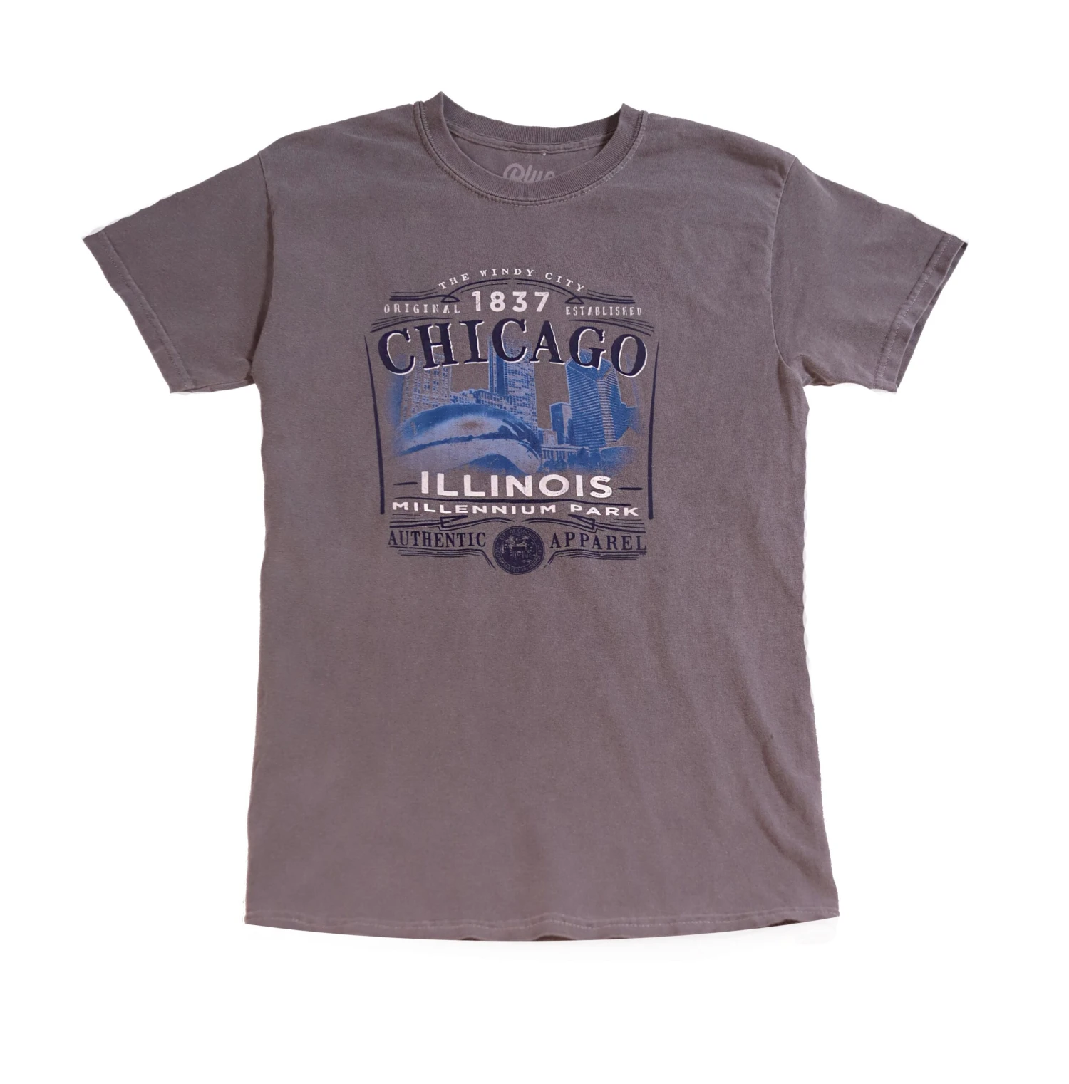 Chicago Grey Millennium Park Tee. If your Visiting Chicago then or just love the City, then this shirt is perfect for you. This shirt features “The Windy City Original 1837 Established Illinois Millennium Park” screen printed on center chest and Skyline view with bean. Scroll around the streets of Chicago in thisĀ Chicago Grey Millennium Park Tee, so grab yours today!