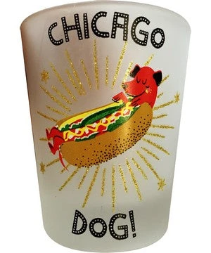 Chicago Hot-Dog Glitter Shot Glass by Chicago Souvenir. Visiting Chicago and looking for the perfect gift, get this Hot-Dog shot glass. This shot glass features Chicago’s well known Hog-Dog design printed around the glass in red, green. yellow, brown and gold glitter. What better way to represent Chicago with this Chicago Hot-Dog Glitter Shot Glass, so grab yours today!