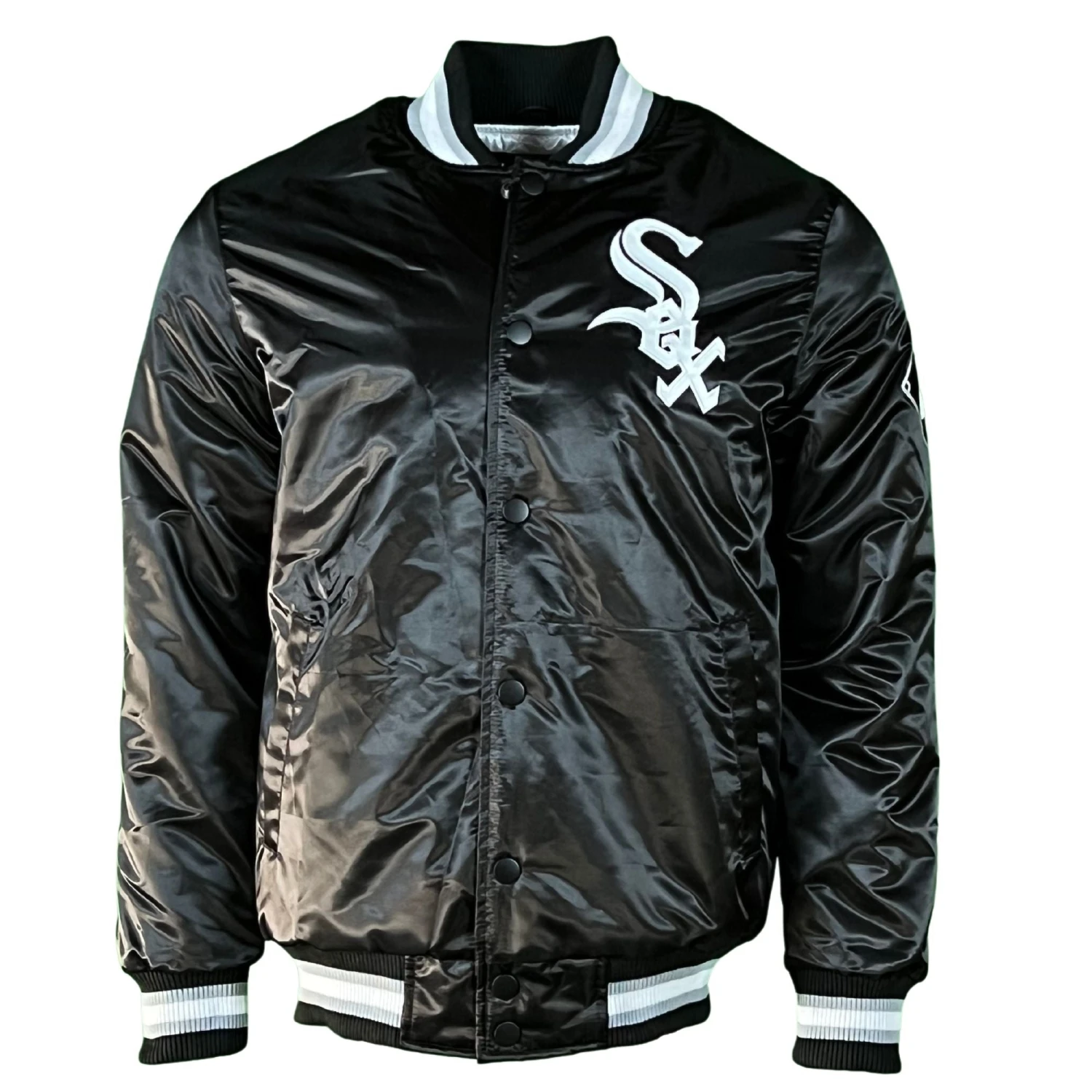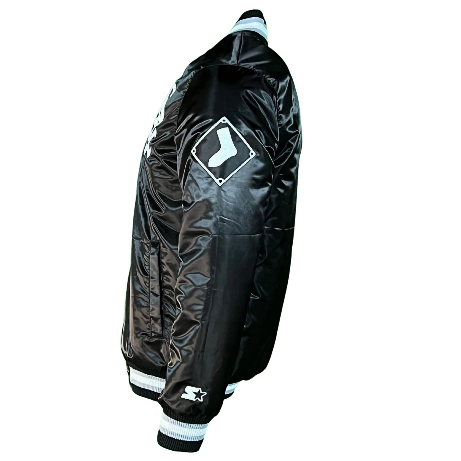 You love to add your Chicago White Sox fandom to any look, even if the weather starts to cool. Turn heads with this classic Locker Room Satin Vintage Black full-snap jacket from Starter. With embroidered Chicago White Sox graphics and a full-snap design, this striking jacket will become your go-to anytime you step out.
