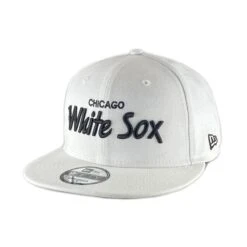 The White Sox Snapback Hat with Chase Script is a hat for diehard fanatics and hat connoisseurs alike. The eye-catching white crown and flat visor form the backdrop for a black “Chicago White Sox” wordmark that stands out from a distance. New Era 9FIFTY constructs this high-crown hat from 100% moisture-wicking polyester for hot summer days on the South Side. Order your officially licensed Chicago White Sox Script White Snapback from Clark Street Sports or stop in seven days a week.