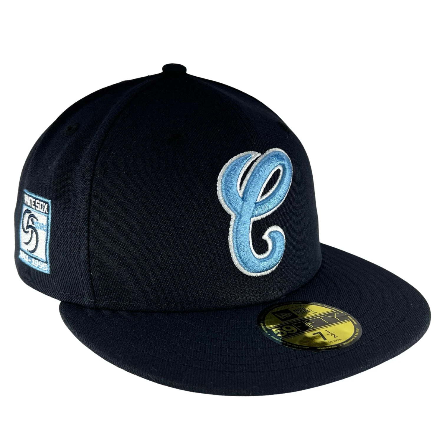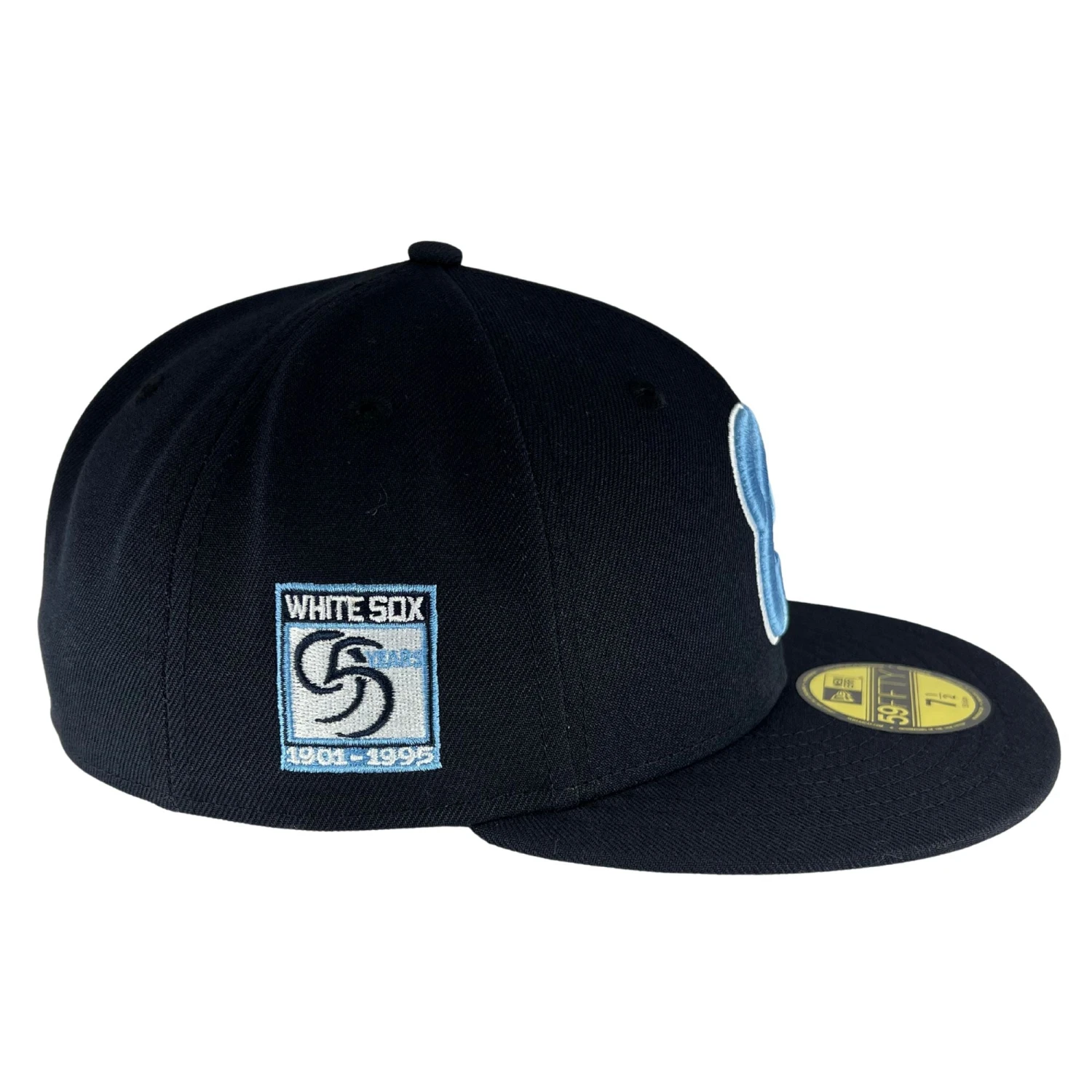 Check out our new Chicago White Sox Navy Sky New Era 59FIFTY Fitted Hat! This uniquely designed cap showcases quality sky blue stitching throughout its design which stands out against the hat’s navy colorway. The 95 year White Sox anniversary patch prominently stands out on the hat’s right side while the back of the hat features the traditional MLB batterman logo. Don’t forget to check out the hat’s contrast color undervisor in sky blue! You’re going to want to add this to your collection. Only at Clark Street Sports.