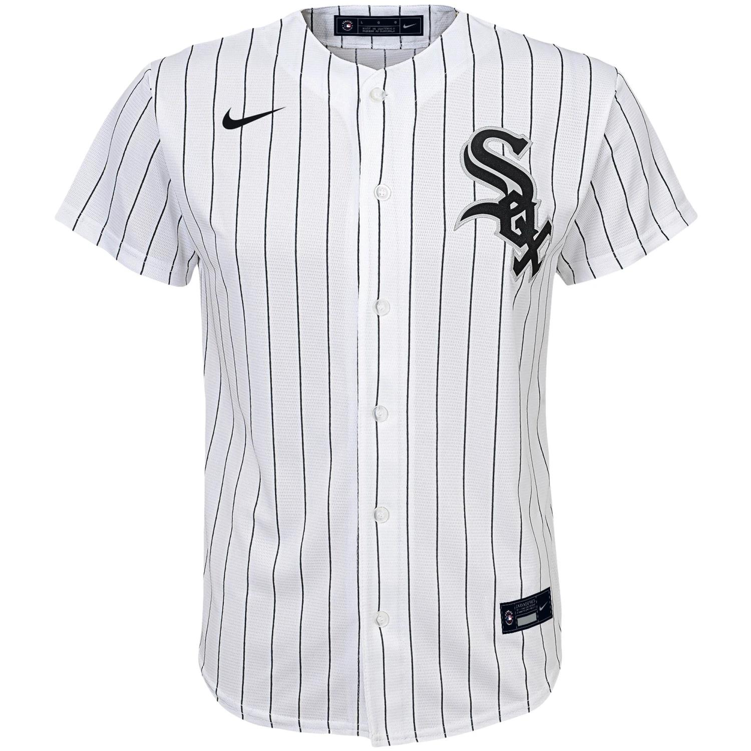 Get your child a matching jersey with the family to cheer on the White Sox! Show off your White Sox Pride from a young age and capture the cute moments while at the game. Add this Chicago White Sox Nike Youth Home Pinstripe Replica Jersey to your collection today!