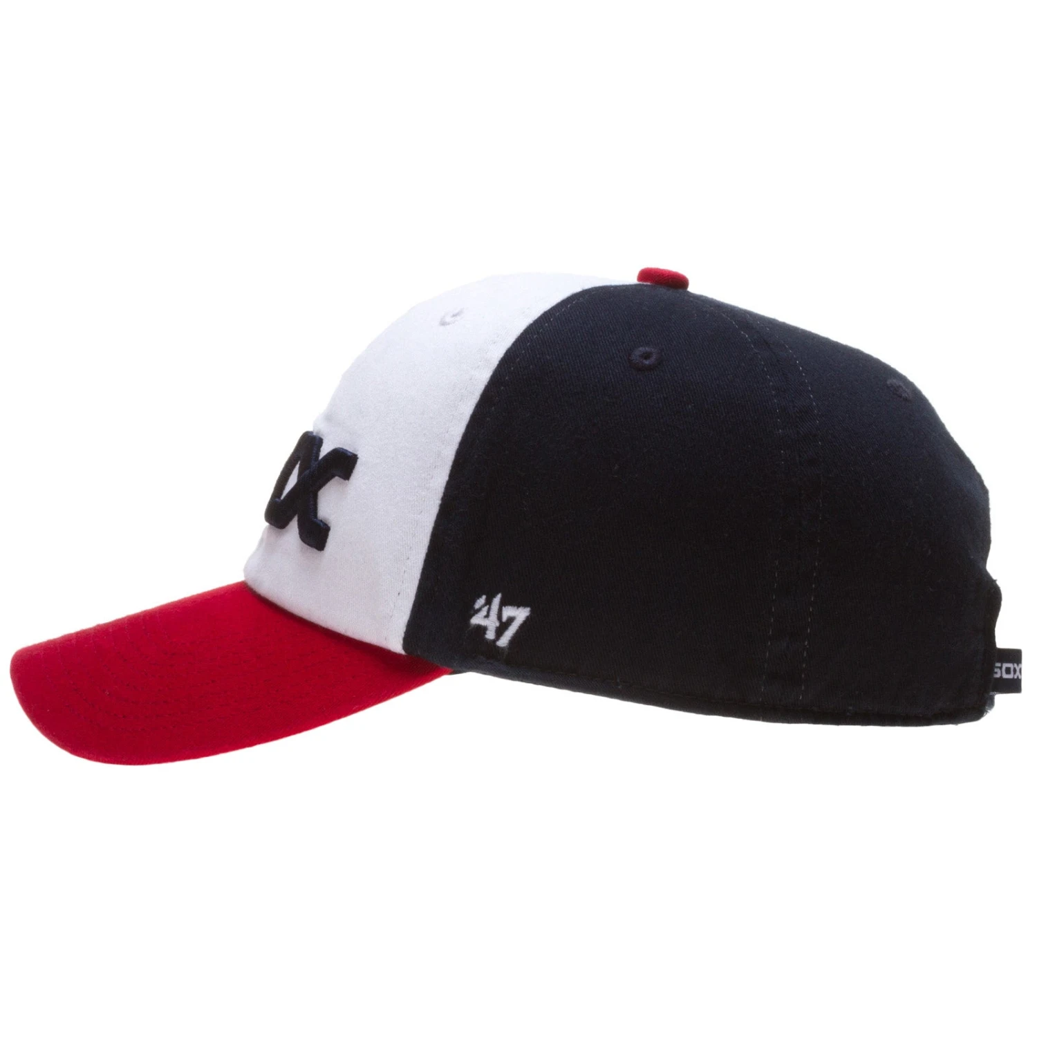 Boasting the retro color scheme and text logo the White Sox made iconic in the eighties, this hat is perfect for the longtime White Sox fan. Before Abreu knocked home runs out of US Cellular Field, Harold Baines and the boys were rocking Comiskey. Show your South Side pride with this White Sox adjustable hat from 47 Brand. The navy and white relaxed fit crown boasts the vintage Sox text logo in raised navy embroidery. The red curved bill completes the classic color scheme. The strap on the back of the hat allows the wearer to make sure the hat is always a comfortable fit.