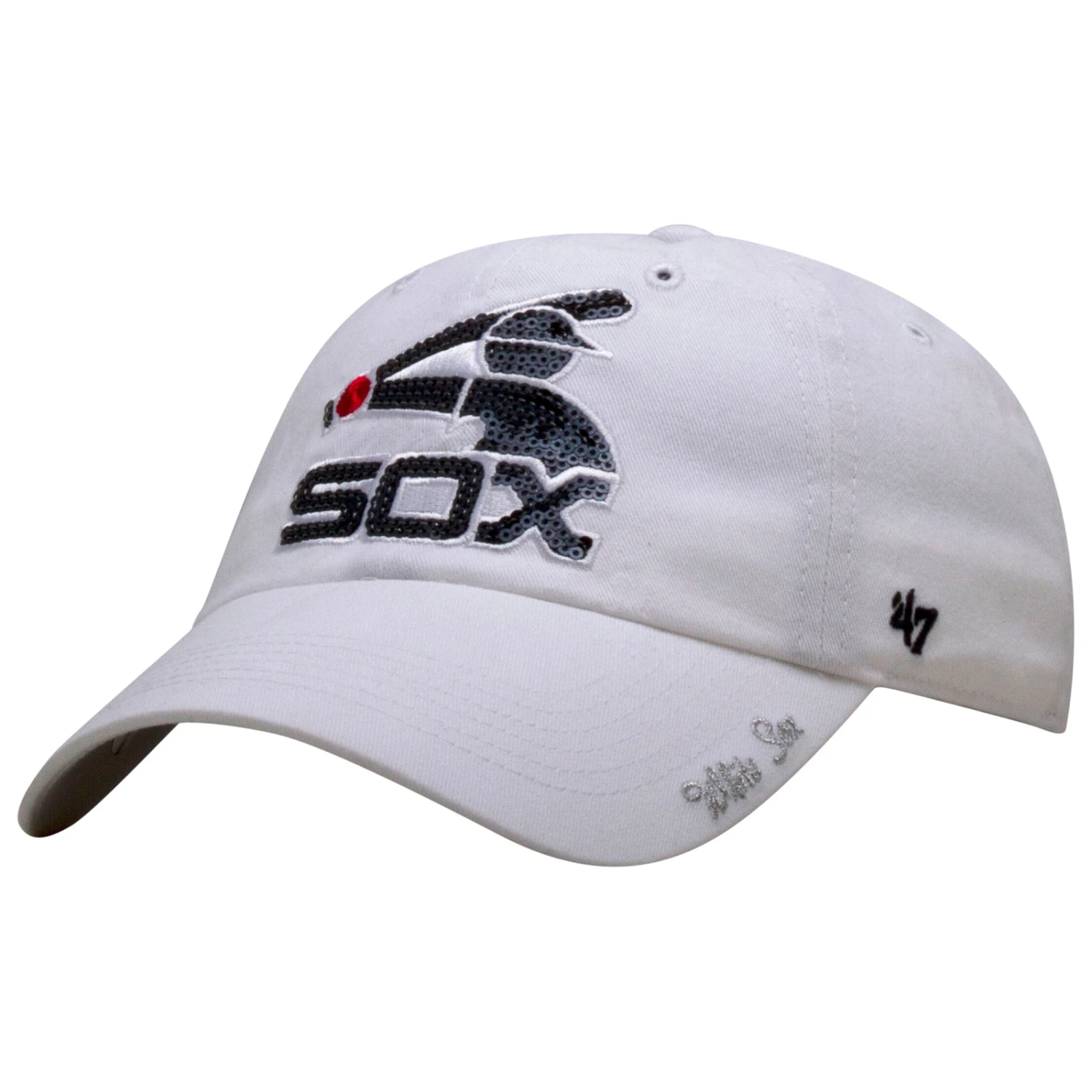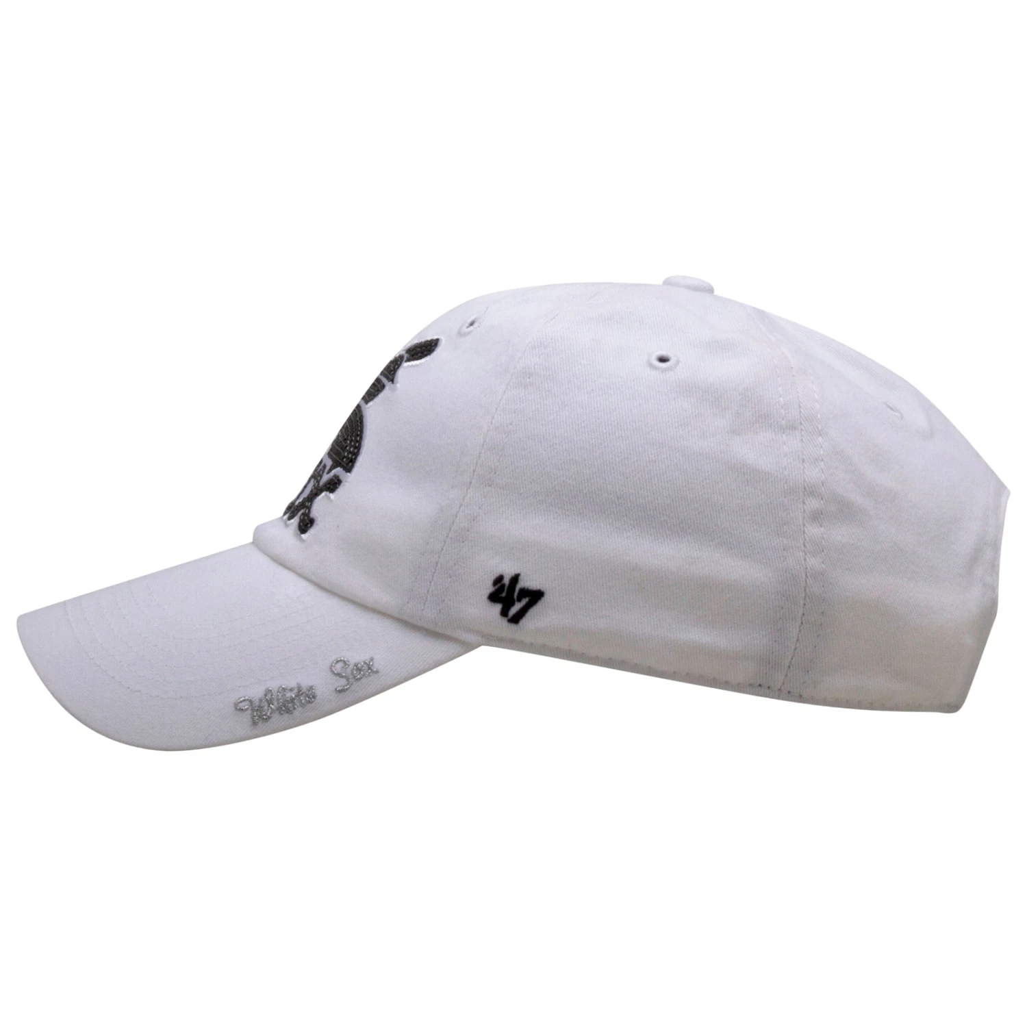 Wear the Chicago White Sox Women’s “Bling” Batterman Hat by 47 Brand to combine retro reverence with modern flash. A navy blue 1980 Batterman logo is embroidered on a white slouch-style crown made of 100% cotton. The red and navy sequins dotting the emblem provide showiness for a girl’s night out while a white adjustable strap with grey “Chicago” script gives you cozy fit. Show some flash by hitting a wardrobe blast with our White Sox Vintage Batterman Sequined Hat.