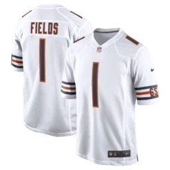 Rep the on-field look of your favorite Chicago Bears player with this Justin Fields Game jersey from Nike. Its heat-sealed name, numbers and team details provide a kickoff-ready aesthetic while also offering a comfortable, lightweight feel. Designed for everyday movement, this jersey has a versatile tailored fit and features mesh side panels for added ventilation as you celebrate every big play by the Chicago Bears this season.