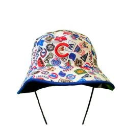 This New Era bucket hat features all of the Chicago Cubs logos printed all over the hat. The current Cubs logo is embroidered on the front of the bucket hat and contains a drawstring to ensure the perfect fit.