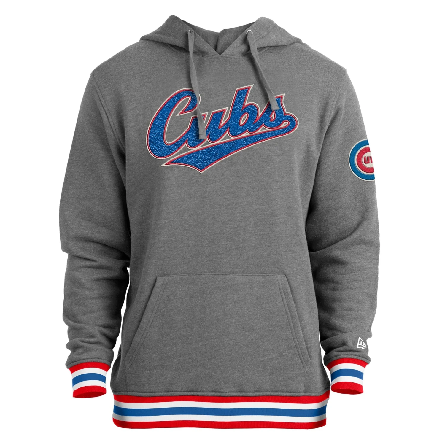 Stay cozy and show off your baseball allegiance with this Chicago Cubs Script Grey Hoodie! Featuring cuffs with the team colors, and bold cubs script along the chest, you’ll stand out in true fan style. Dare to stand out and show your team pride! Get it today at any Clark Street Sports location!