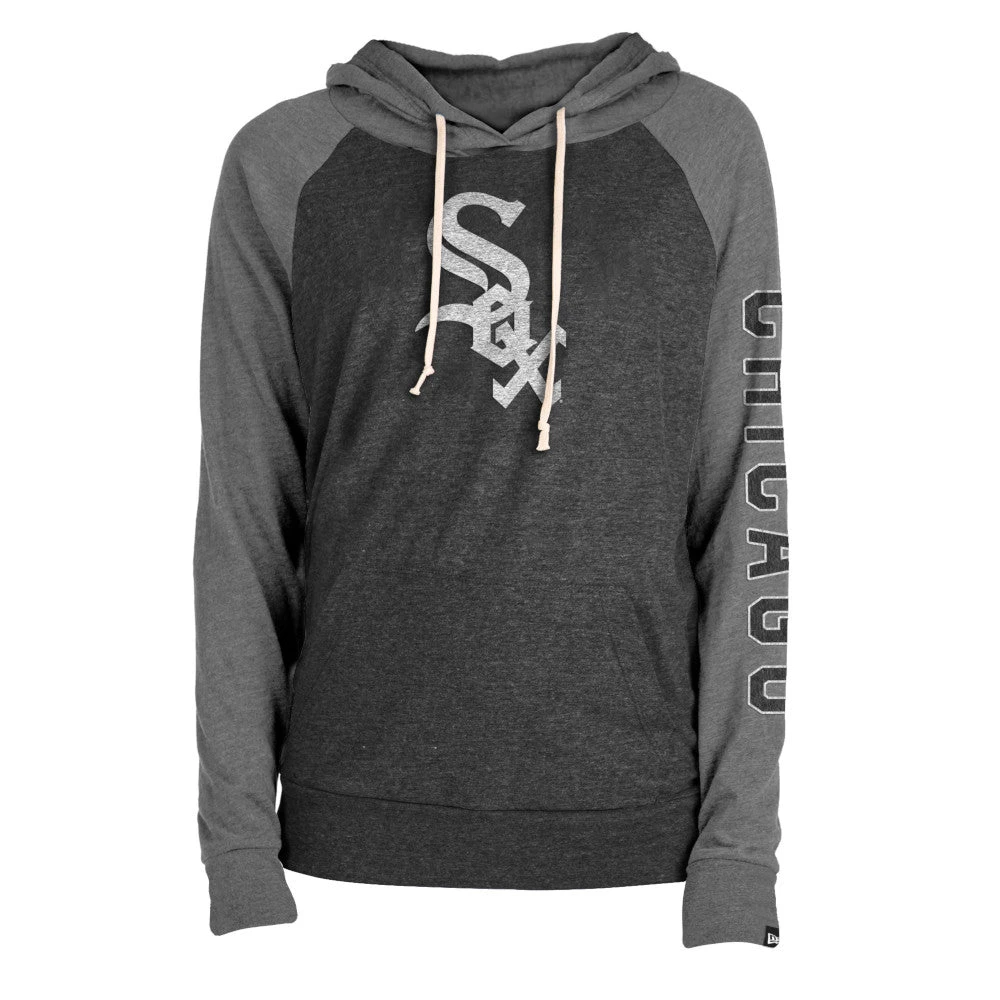 Keep warm during a chilly night game or during a rain delay in this sharp Chicago White Sox Women’s bi-blend hoodie! This gray, light-weight hoodie has a drawstring hood with the team’s logo screen-printed in the middle of the chest in distressed graphics. This Chicago White Sox Women’s hoodie is the perfect choice for the spring season game, so grab yours today!