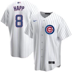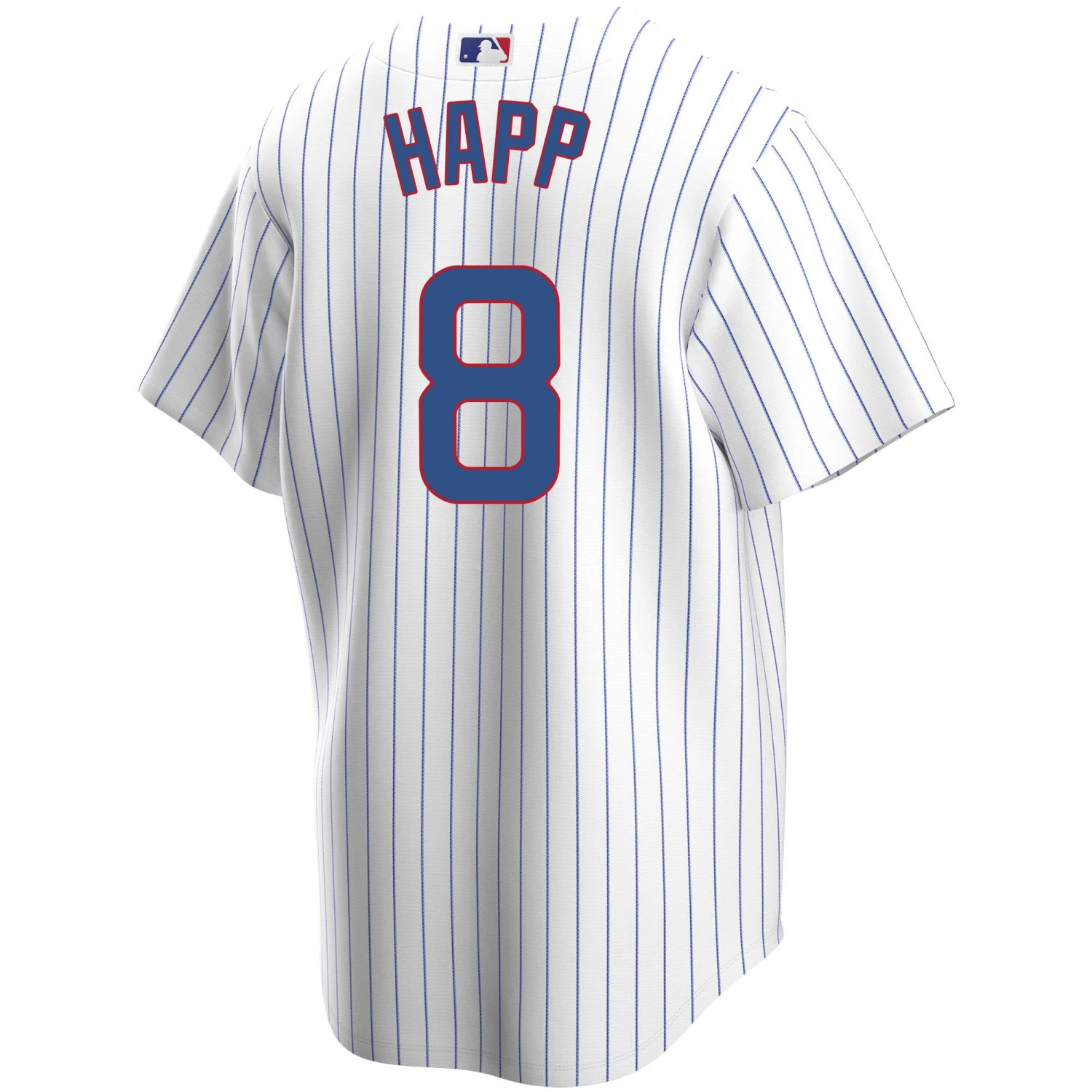 GET GAME DAY READY with this Chicago Cubs Ian Happ #8 home jersey! Channel your inner second basemen with this replica pinstripe jersey. Featuring “HAPP 8” on the back and the Chicago Cubs Bullseye logo on the left chest, you’ll be sure to score a home run in this jersey!