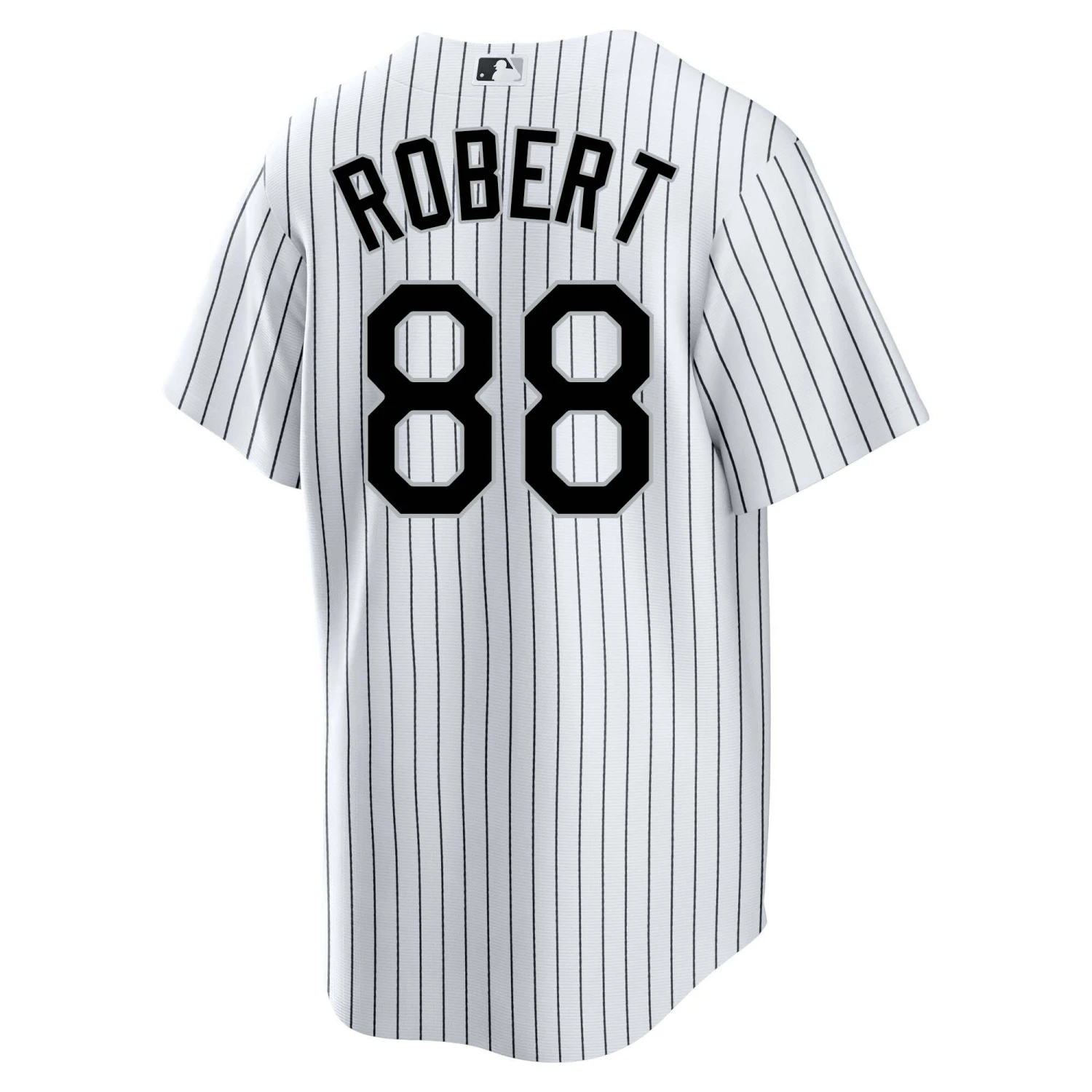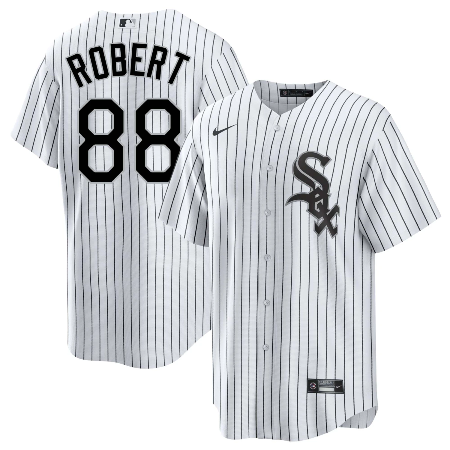 You’ll be on the money for every inning with a Luis Robert White Sox Replica Pinstripe Jersey from Clark Street Sports. It’s made by Nike from 100% polyester with the official Sox logo on the left chest and “Robert 88” across the back. Six sizes allow any fan to rep their favorite centerfielder at the ballpark, with their buddies or at home on the couch. Shop for your officially licensed Luis Robert men’s home jersey at Clark Street Sports.
