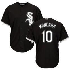 GET GAME DAY READY with this Chicago White Sox Yoan Moncada #10 black alternate jersey! Channel your inner outfielder with this replica jersey. Featuring “MONCADA 10” on the back and the Chicago White Sox logo on the left chest, you’ll be sure to score a home run in this jersey!