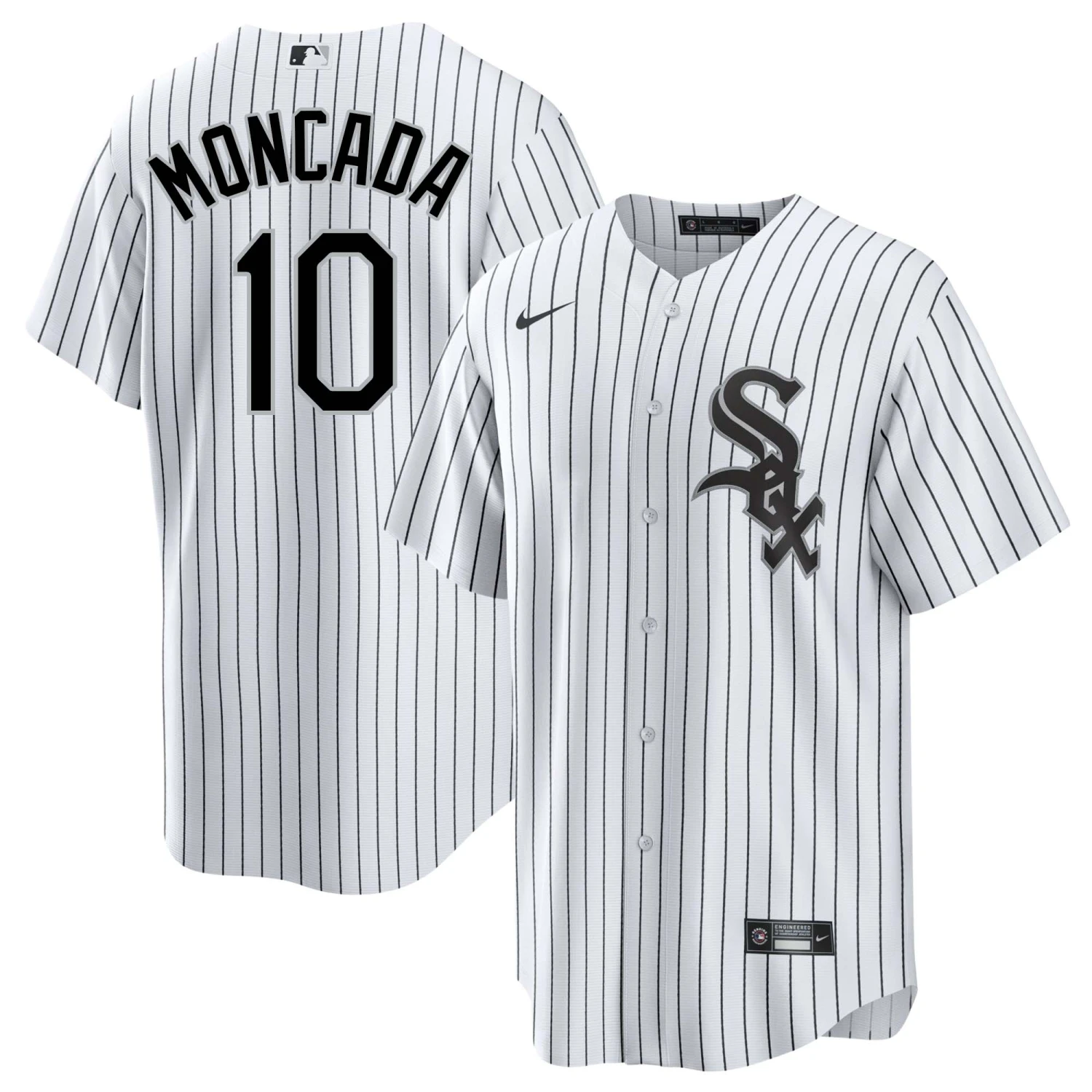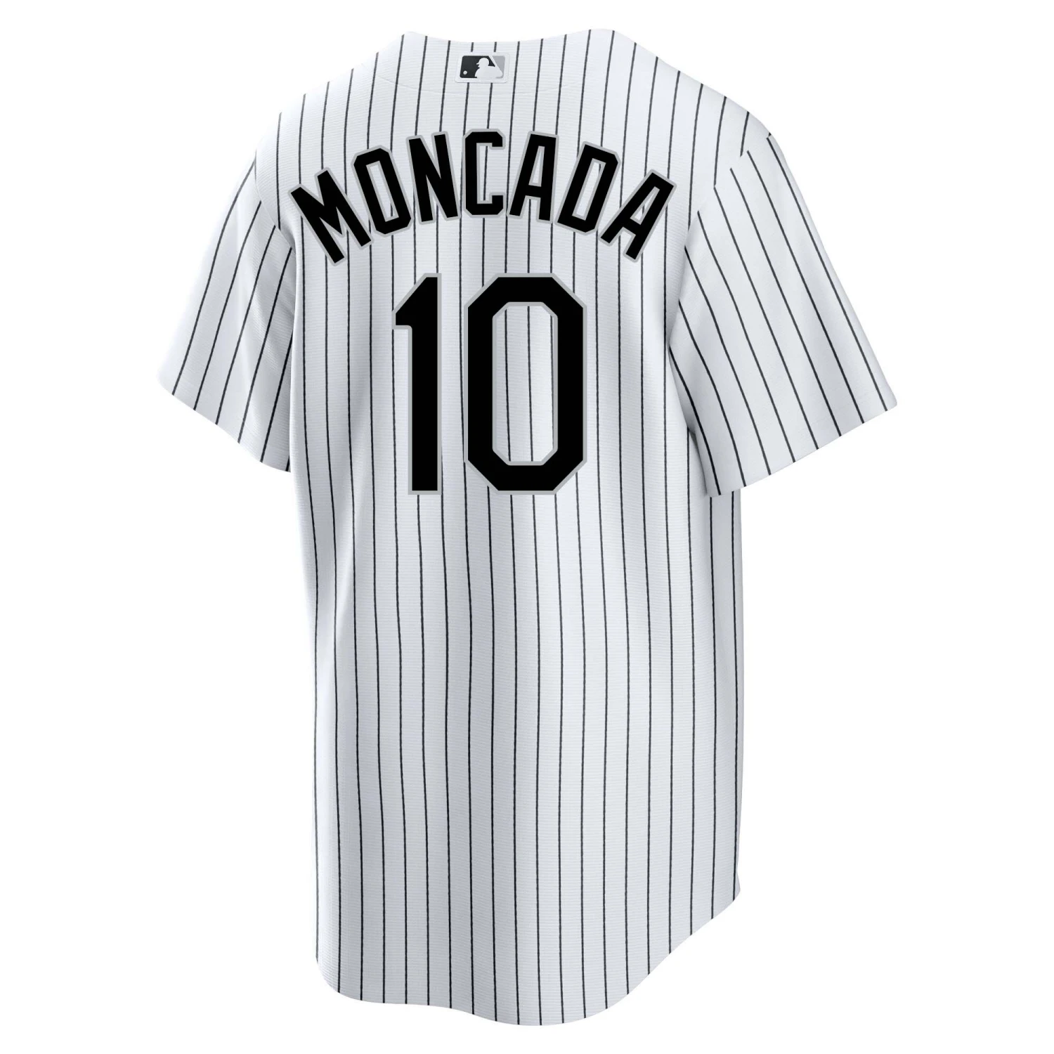 GET GAME DAY READY with this Chicago White Sox Yoan Moncada #10 home jersey! Channel your baseball player with this replica pinstripe jersey. Featuring “MONCADA 10” on the back and the Chicago White Sox logo on the left chest, you’ll be sure to score a home run in this jersey!
