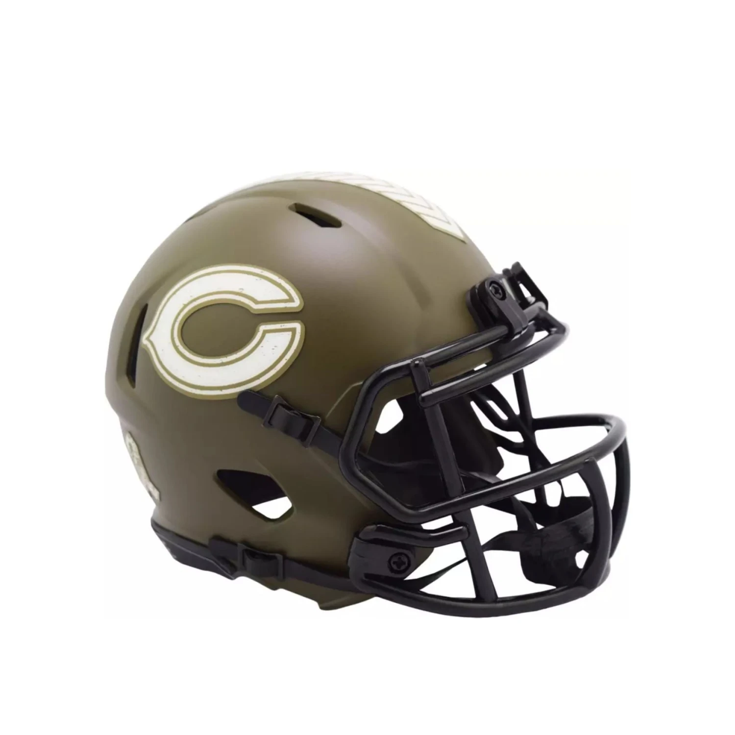 This mini helmet is the perfect way to show your Chicago Bears pride while saluting to the brave men and women of the US armed forces. The 4×4 mini helmet is the perfect size to show off your Bears spirit anywhere. Go Bears and salute! Get it today at Clark Street Sports!